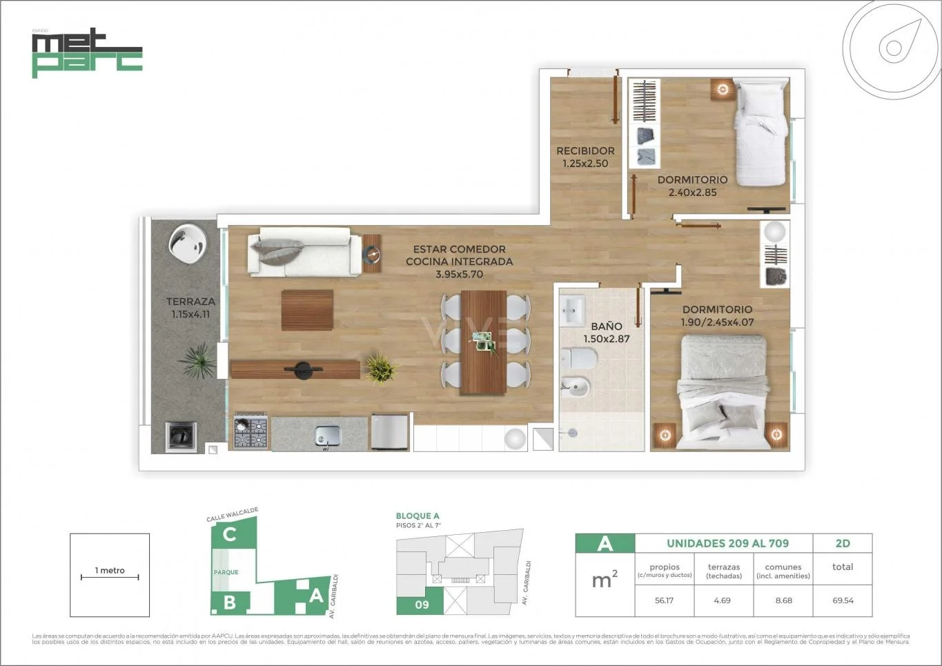 Met Parc es un condominio conformado por tres bloques que cuenta con parque para niños, salón multiuso, barbacoa con parrillero y vistas panorámicas, sala de juegos, sala multimedia con pantalla gigante y Gimnasio.