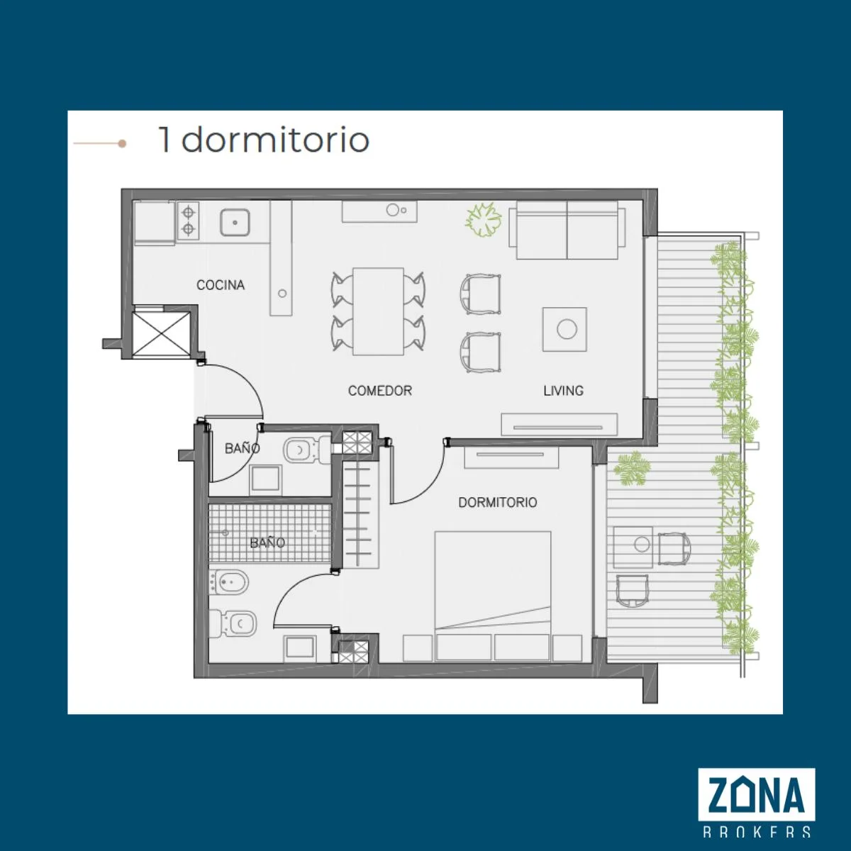 Cuenta con un amplio living - comedor, con excelente iluminación y ventilación ya que el mismo conecta con el blacón mediante una puerta ventana. Este ambiente cuenta con aire acondiconado y todo el apartamento con losa radiante eléctrica