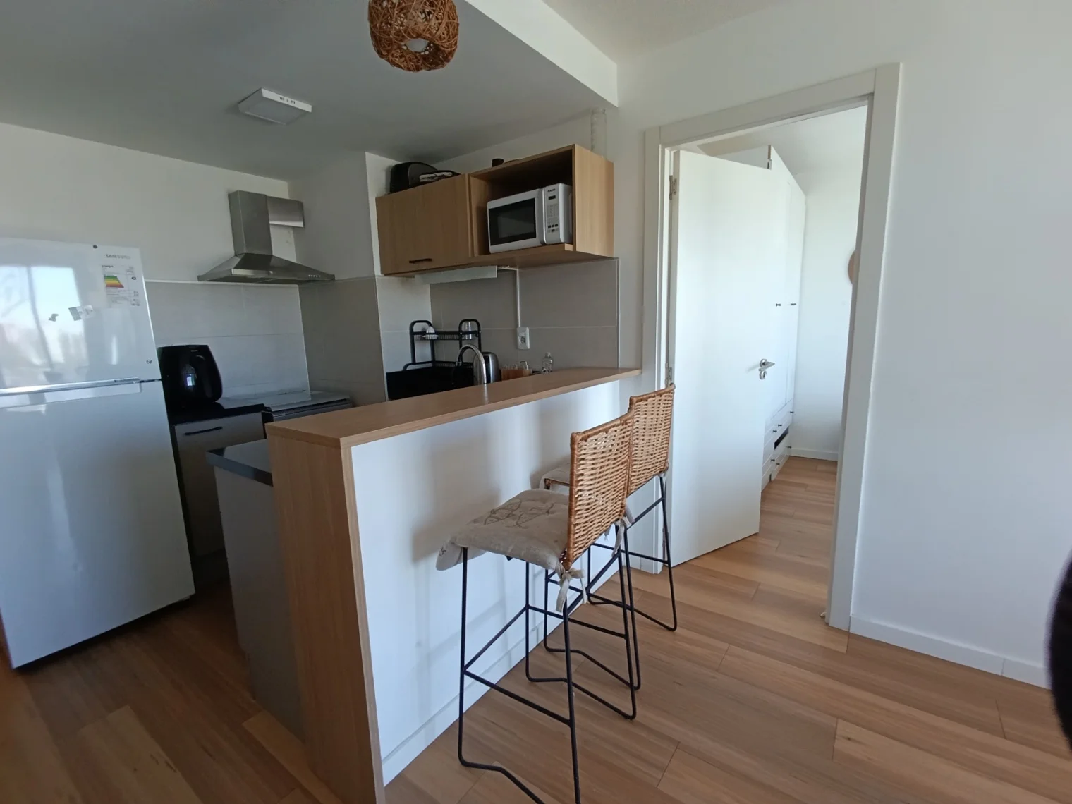 Con una disposición frente y orientación este, el apartamento cuenta con un acogedor dormitorio, un baño, una cocina equipada y un encantador balcón ideal para disfrutar de las mañanas soleadas.