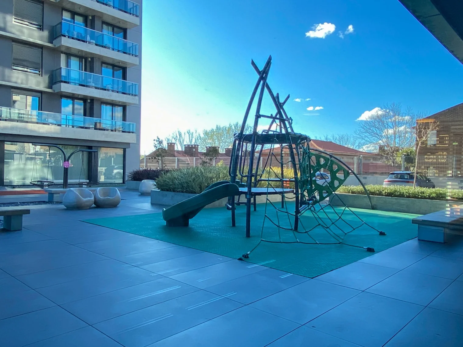El edificio, conocido como Estrellas de Malvín, ofrece amenities de primer nivel que incluyen dos Salones de Usos Múltiples (SUM) en el último piso, con capacidad para 10 o 30 personas. Además, cuenta con área de juegos para niños, gimnasio, coworking, área verde de huertas y un espacio seguro para mascotas sin costo adicional. El lavadero está equipado con lava-secadoras que se cargan a los gastos comunes. Situado en el piso 12, este apartamento brinda una vista despejada al frente y es super luminoso, ideal para disfrutar de la calidez del sol. Los gastos comunes son de UY$7.500 aprox.