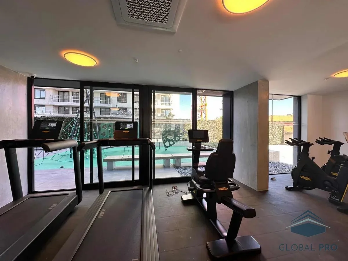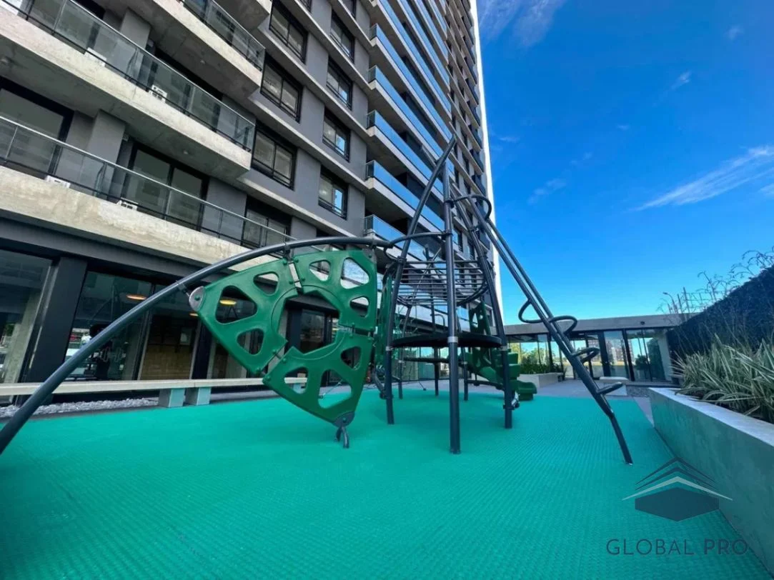 Entre las características más destacadas, se incluyen la portería 24 horas, un gimnasio completamente equipado, un coworking para profesionales, una huerta comunitaria, y áreas de juegos para niños. Además, dispone de un playroom y barbacoas, perfectas para reuniones familiares o con amigos. El apartamento se entrega con aire acondicionado en el living, campana, y mampara, garantizando confort y estilo. La cochera cubierta es otro gran beneficio que complementa la oferta.