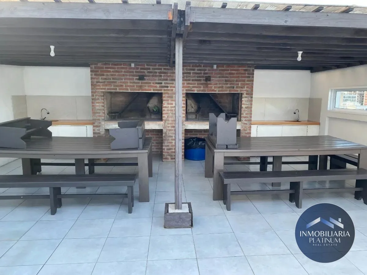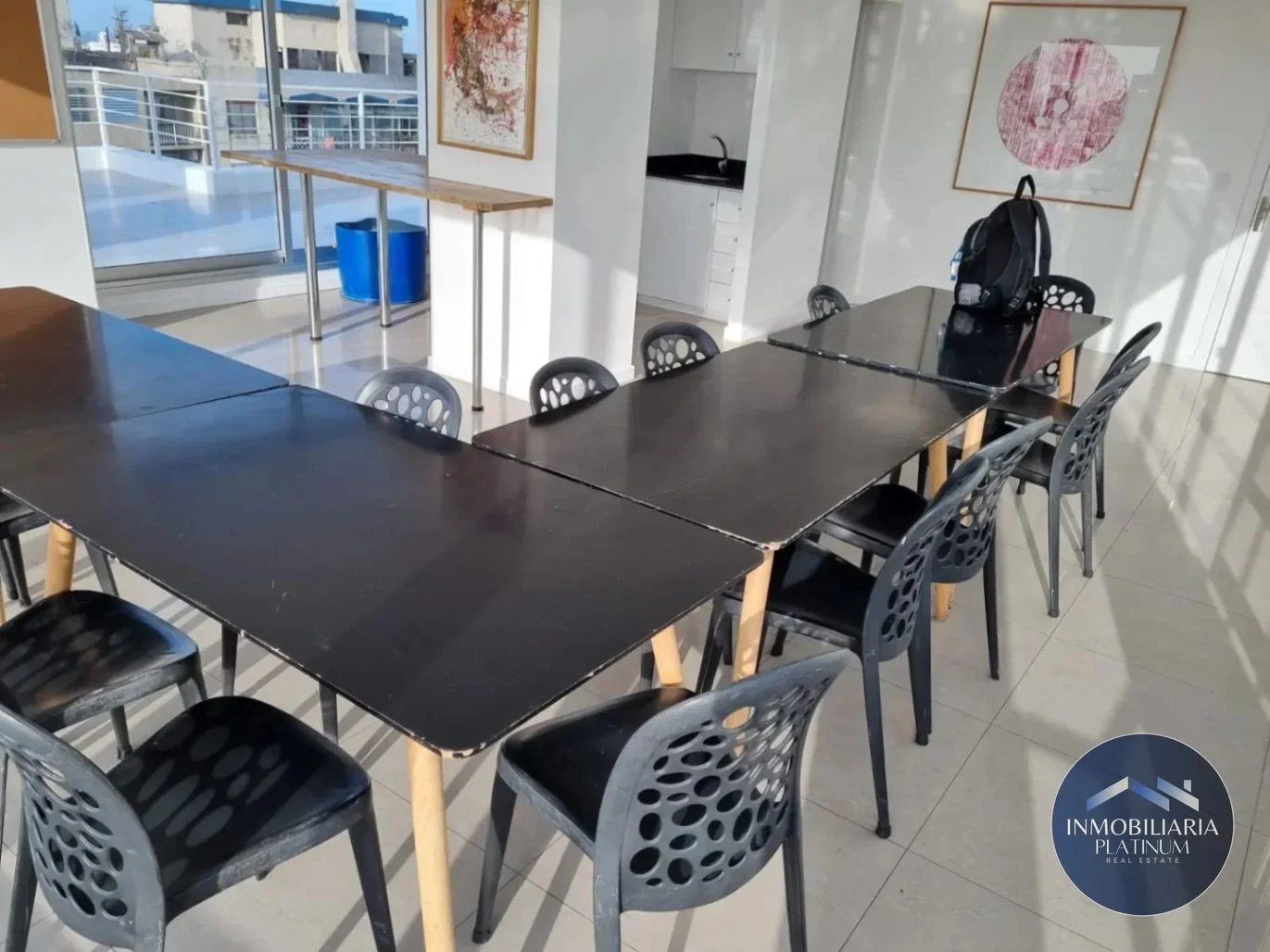 El apartamento cuenta con un balcón, cocina integrada con placares y una isla/barra con estantes, ideal para disfrutar de momentos agradables. El baño está revestido en porcelanato y cuenta con una ducha con mampara. Entre las comodidades adicionales, se incluye aire acondicionado, un hermoso lobby con sillones, un gimnasio equipado con caminadoras, tres ascensores, y portería 24 horas. El edificio ofrece un espacio de garaje cómodo, así como una barbacoa cerrada y abierta, y una piscina con una hermosa vista. Para mayor comodidad, hay un lavadero con tres lavarropas y tres secarropas industriales.