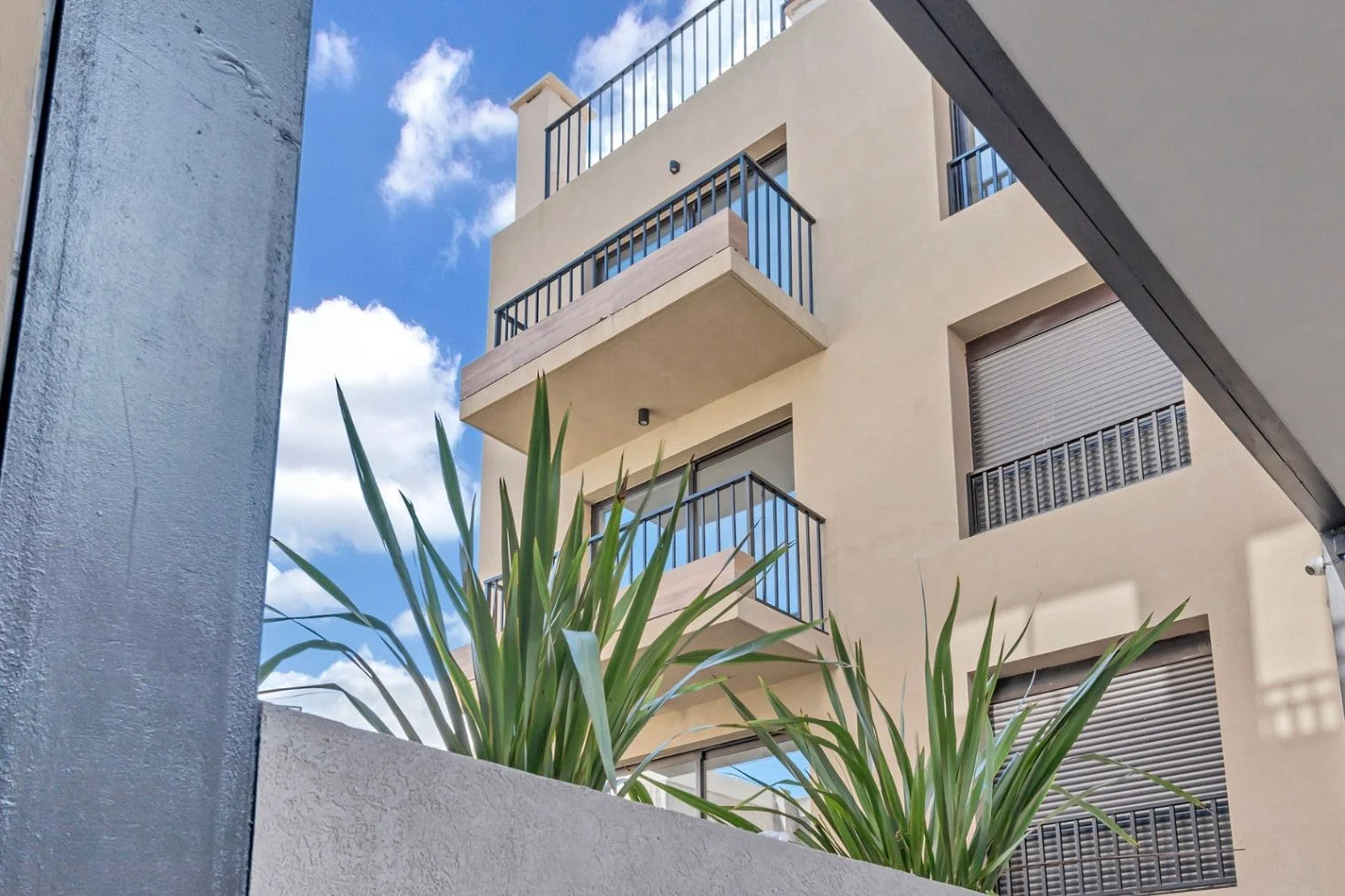 Consta de 16 unidades (12 unidades de 1 dormitorio y 4 unidades de 2 dormitorios), distribuidas en 2 bloques: al frente un bloque de 3 niveles (siendo el nivel de PB la zona de cocheras), y al contrafrente un bloque de 4 niveles.
