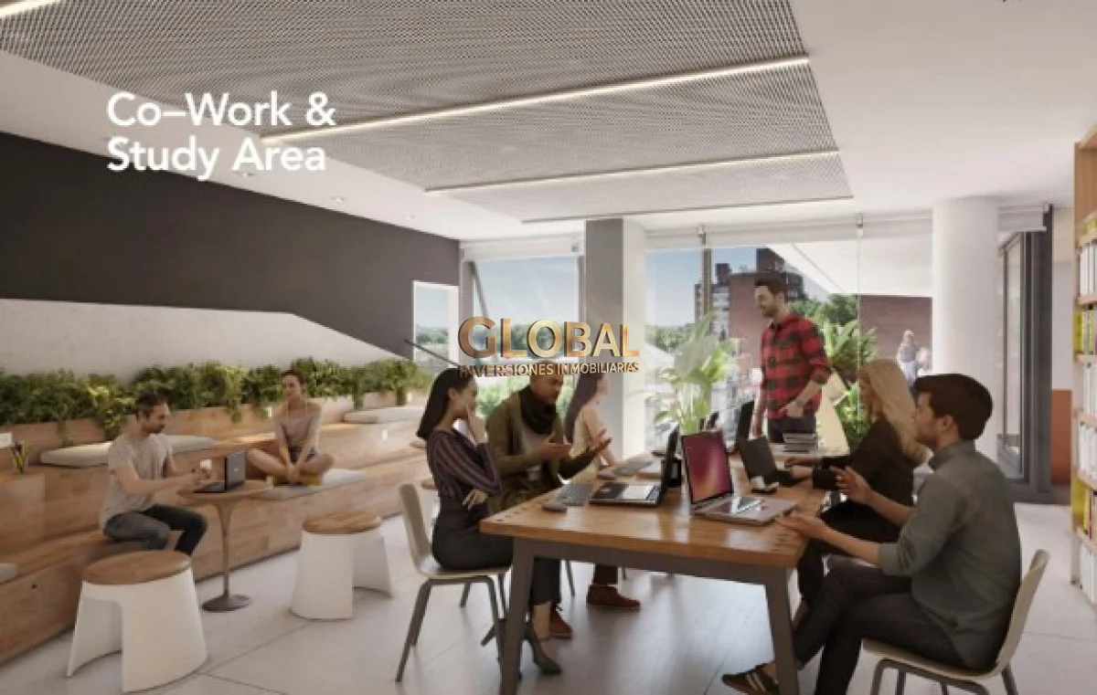 Este monoambiente luminoso está en un edificio pensado para vivir, estudiar y trabajar sin perder tiempo.