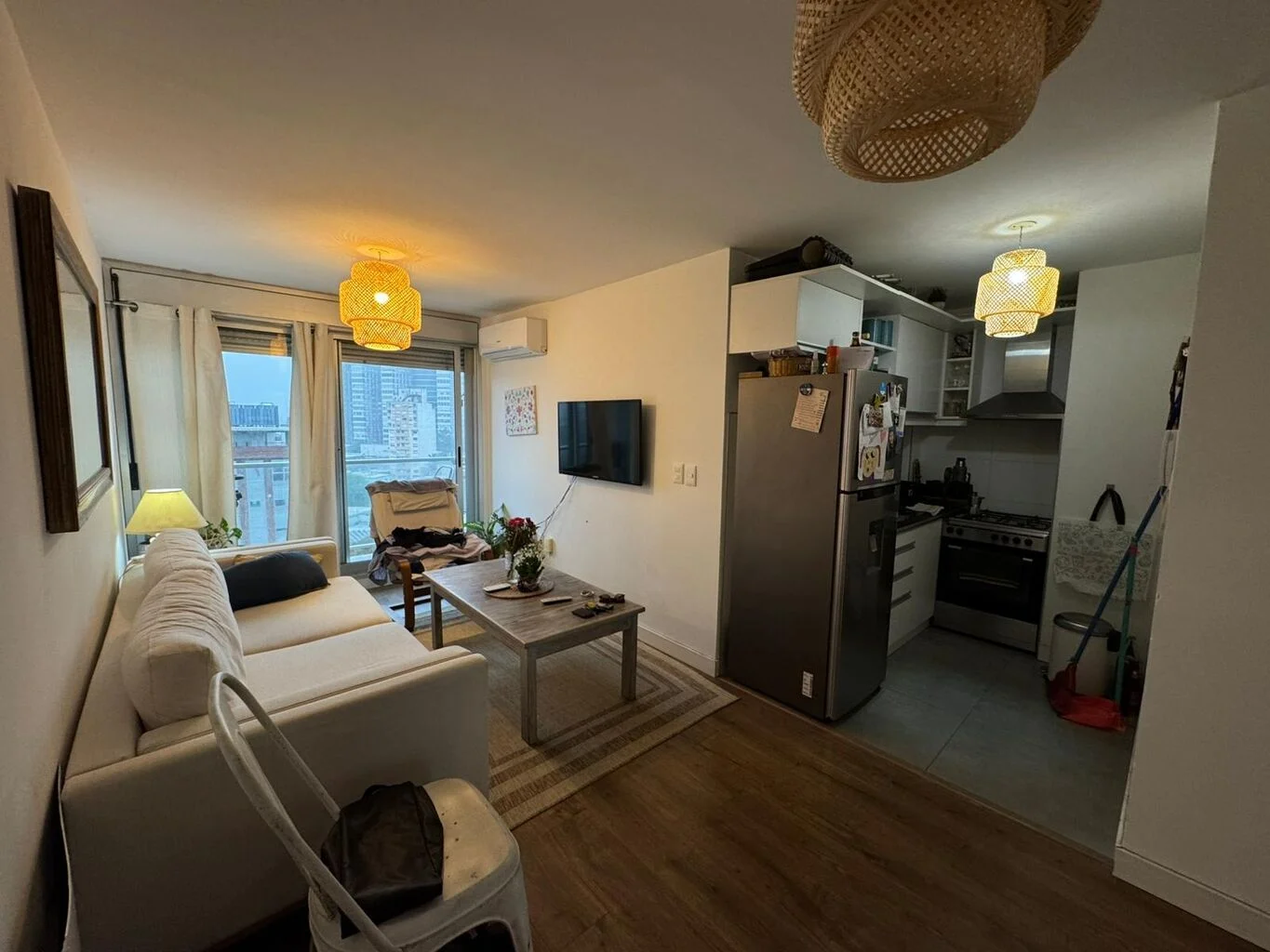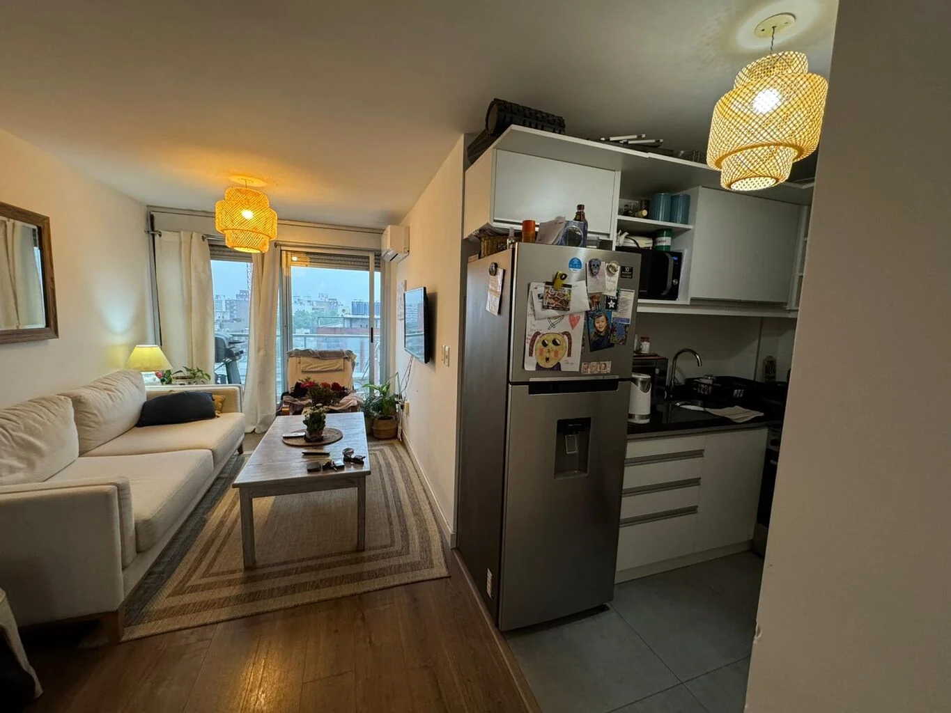 El living-comedor tiene salida al balcón muy cómodo con ventanas corredizas de aluminio, y persianas.