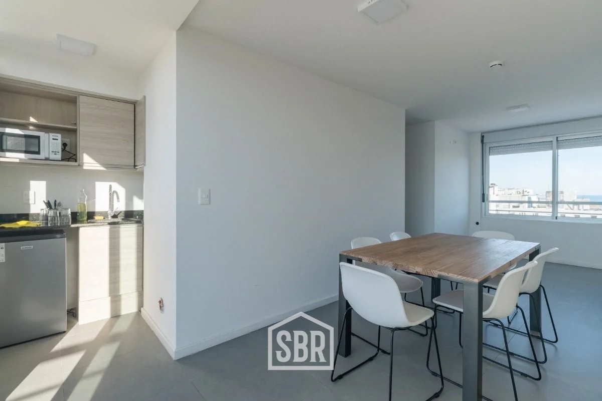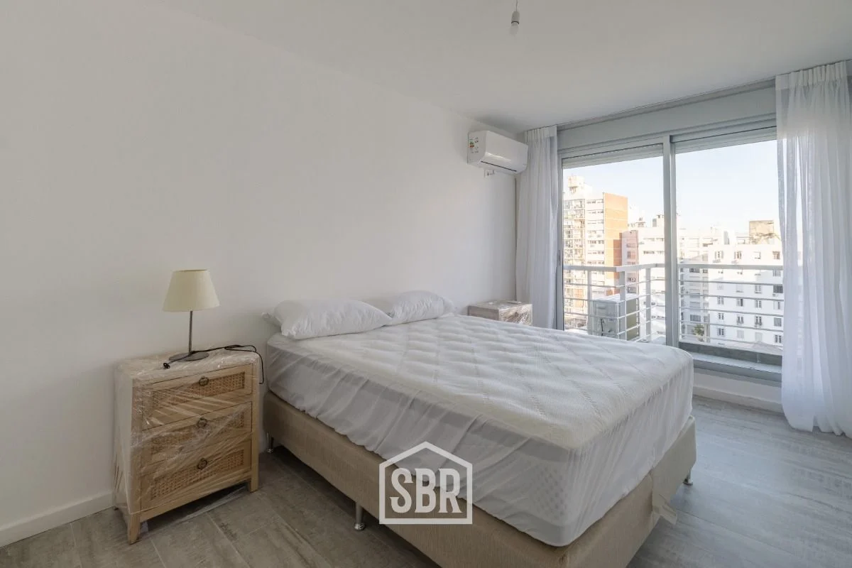 El apartamento cuenta con entrada con código, portero eléctrico, aire acondicionado, equipamiento y mobiliario, garage de uso exclusivo, parrillero en azotea de uso común y laundry.