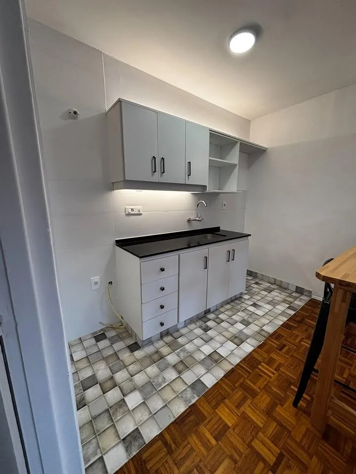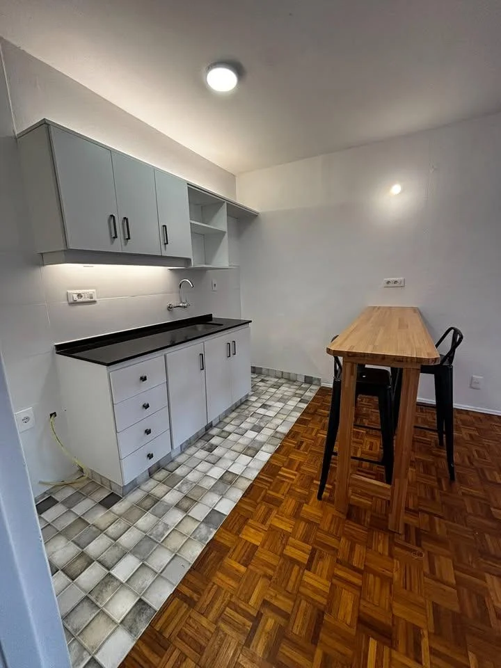 El living comedor se integra con la cocina, completamente remodelada y equipada con muebles nuevos, desayunador con banquetas, muebles bajo mesada y aéreos, y conexión para cocina a supergás, ofreciendo un espacio moderno y funcional para el día a día. El baño también fue remodelado y cuenta con calefón y calefactor.
