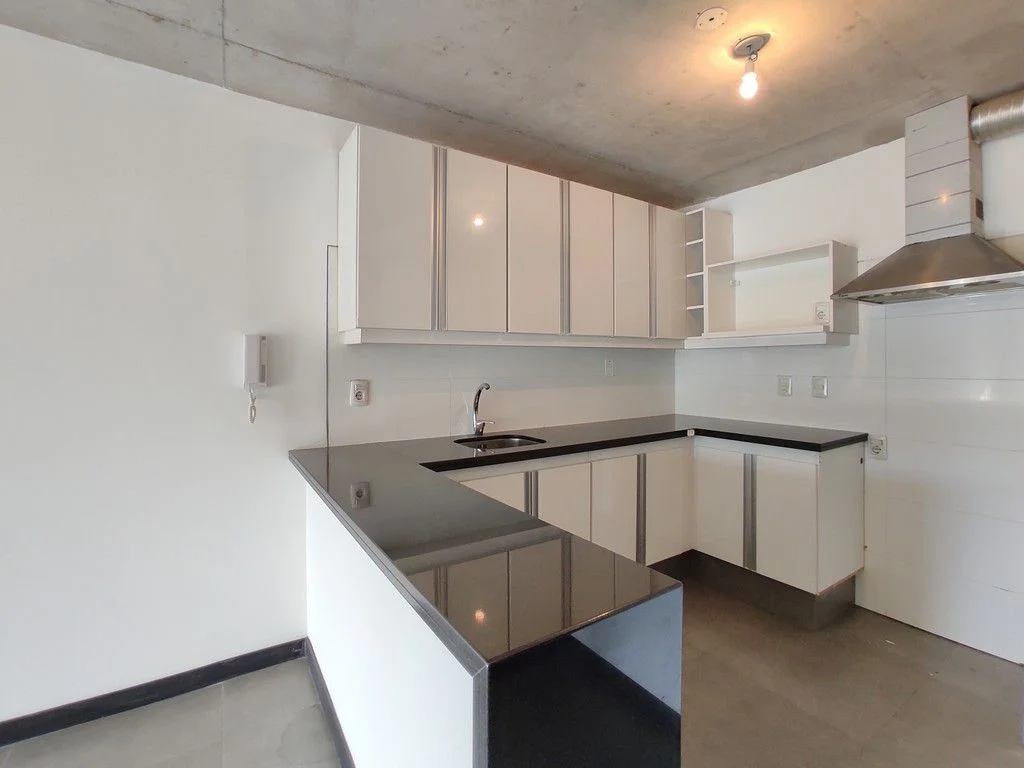 Living-comedor con cocina semi integrada, con placares aéreos, bajo mesada.