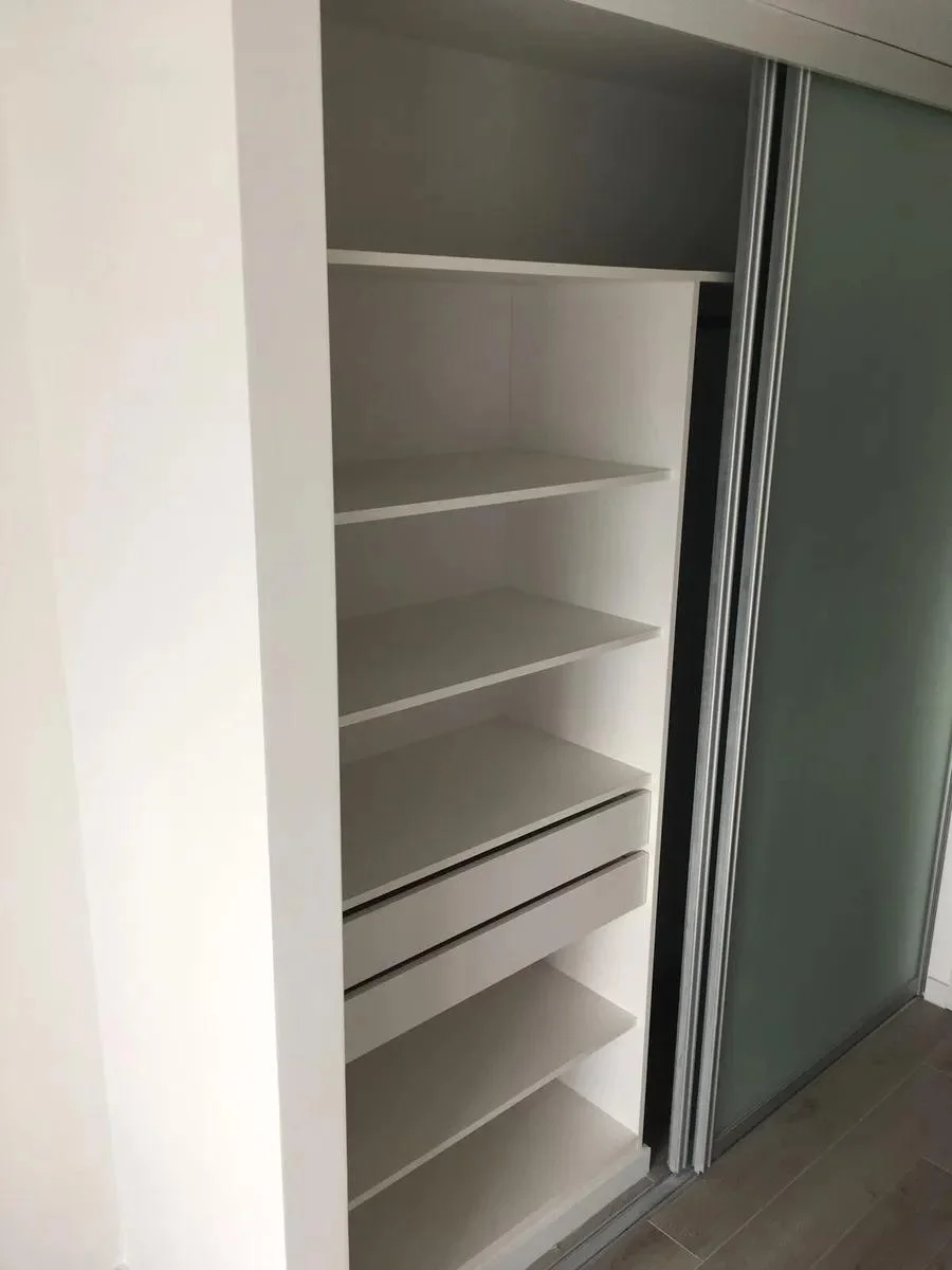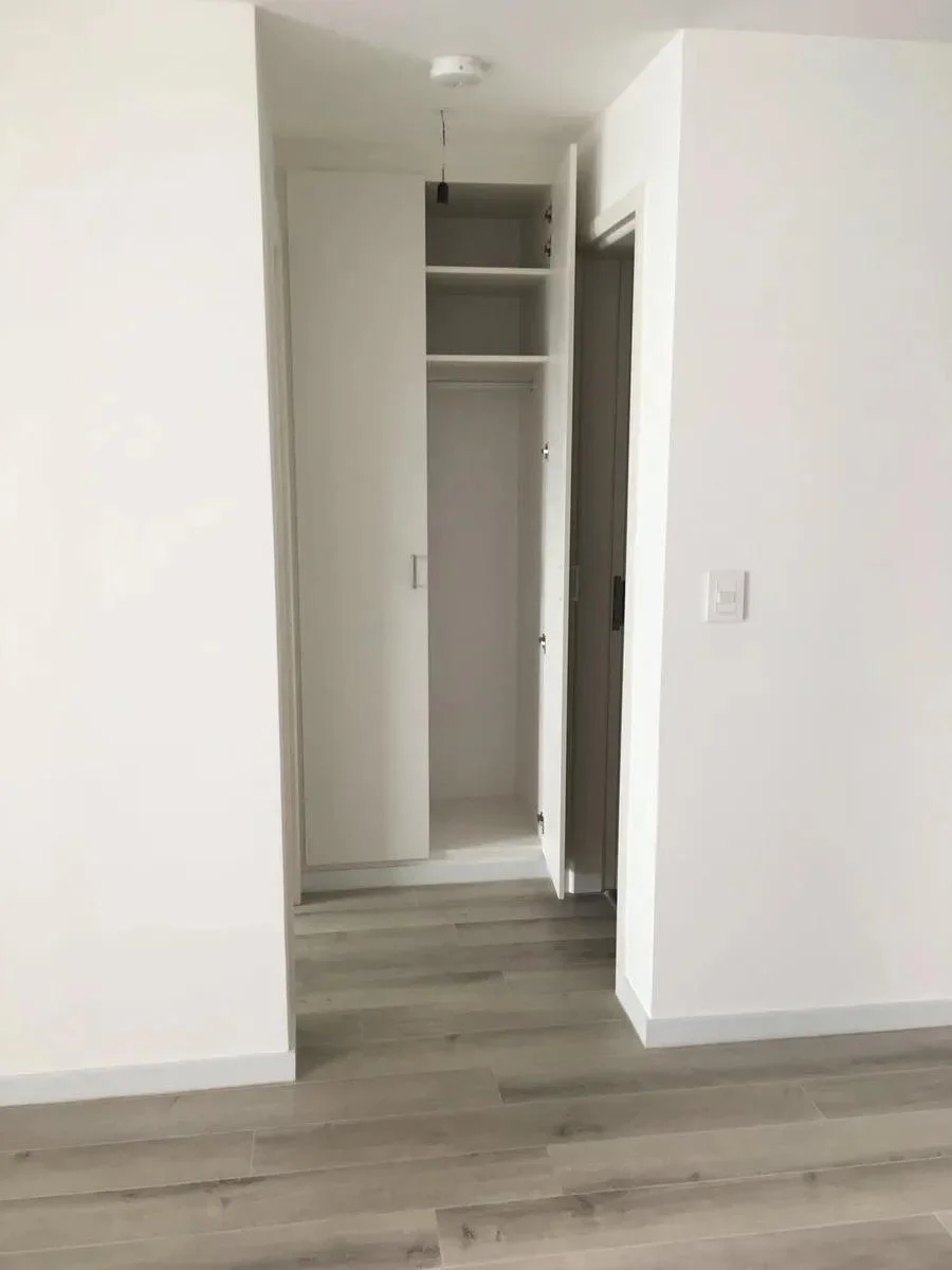 El dormitorio cuenta con placares de diseño y excelente capacidad de guardado, complementado por un placard adicional en el pasillo. El baño completo presenta terminaciones modernas y mampara de vidrio templado que separa la zona de ducha, aportando estilo y funcionalidad.