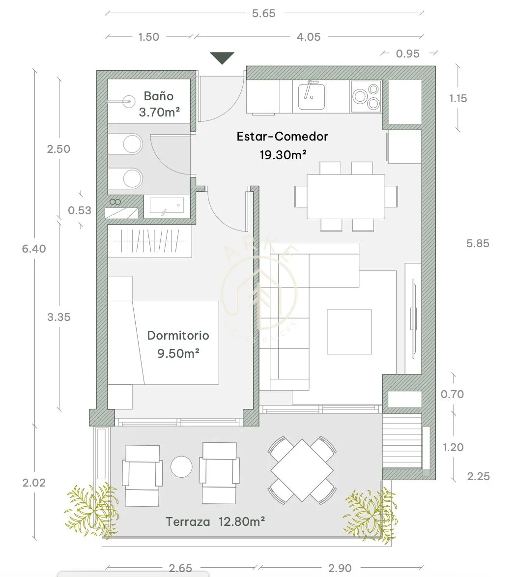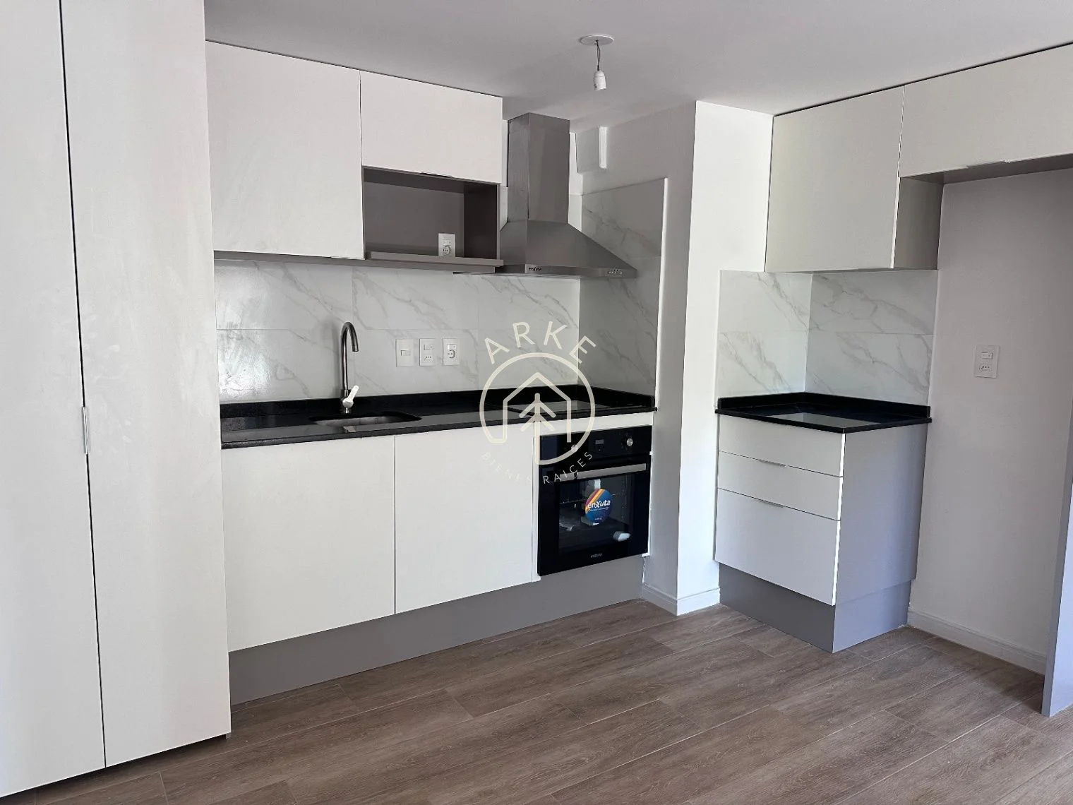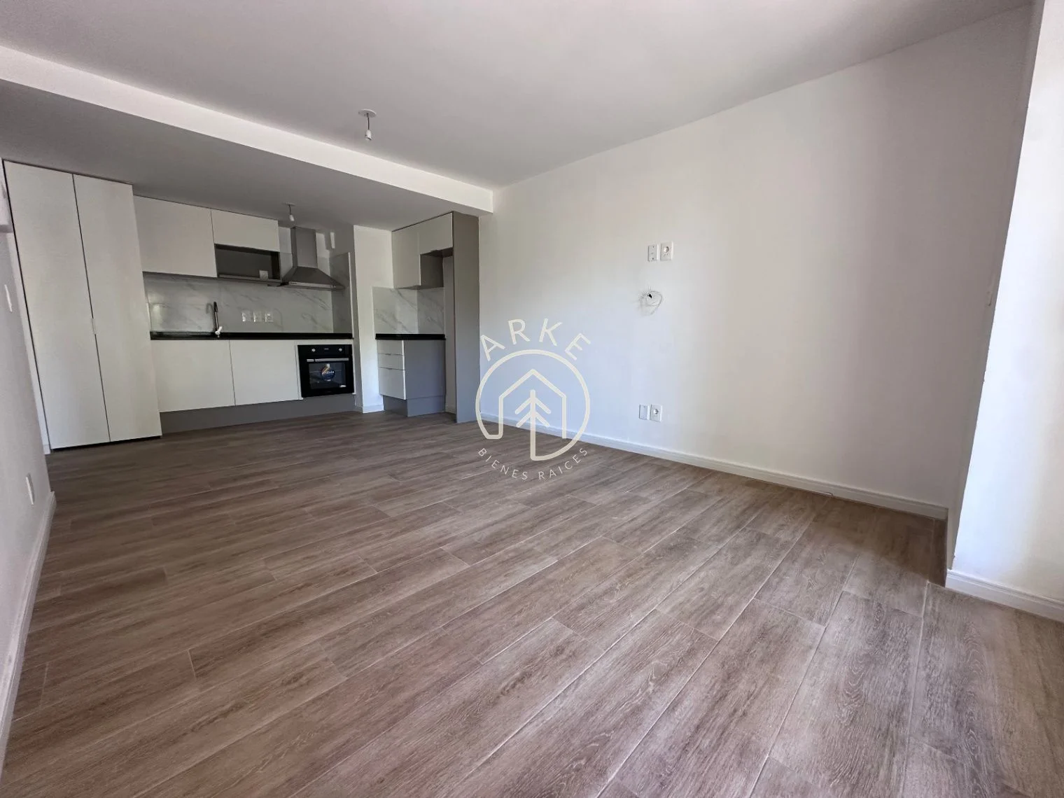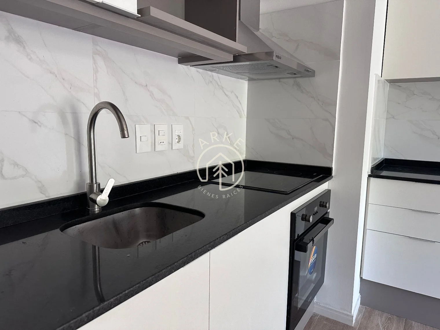 Living-comedor con cocina semi-integrada, equipada con: anafe, horno eléctrico empotrado y campana.