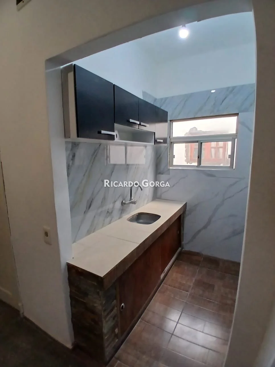 Cocina semi integrada con piso cerámica y mueble bajo mesada y aéreos