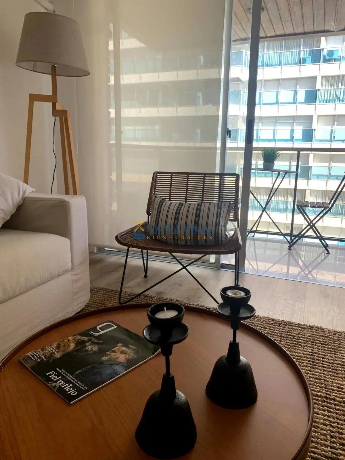 Living comedor: Amplio y luminoso, con ventanales vidriados que aportan abundante luz natural. Cocina equipada: Totalmente amoblada, incluye todos los electrodomésticos necesarios. Dormitorio: Espacioso y cómodo, ideal para el descanso. Baño: Moderno y funcional. Balcón: Perfecto para disfrutar del aire libre. Climatización: Calefacción central y aire acondicionado para tu confort durante todo el año. Terraza lavadero: Práctica y funcional, ideal para el lavado de ropa, y con vista al mar.