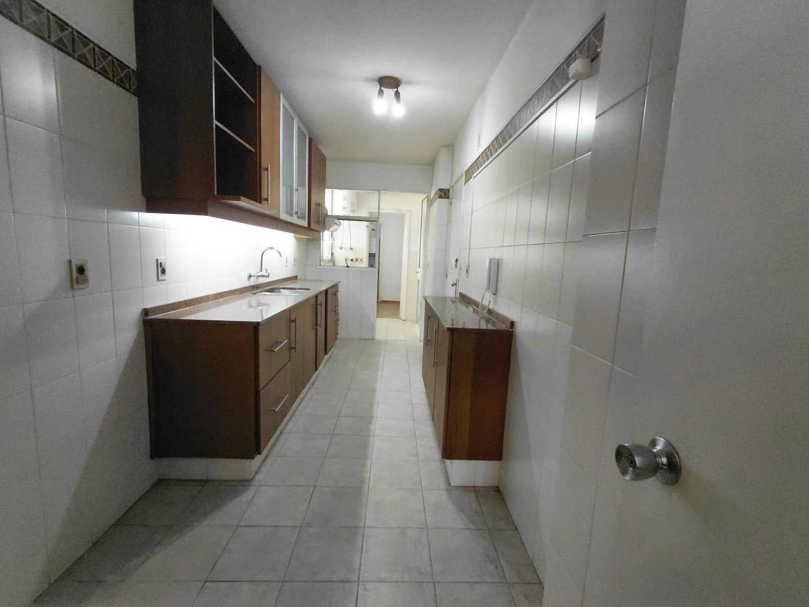 Cocina definida equipada con muebles aéreos y bajo mesadas.