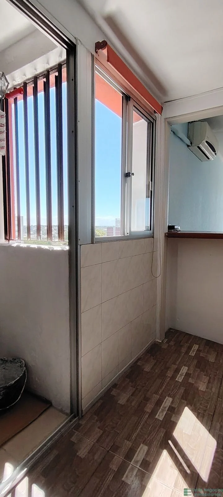 El apartamento se desarrolla con un living comedor con aire acondicionado.