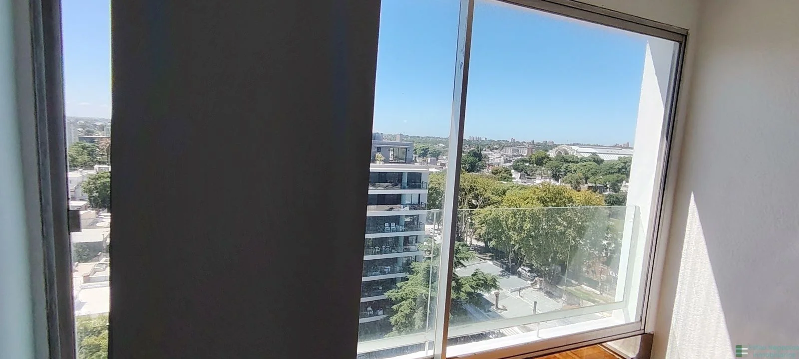 Cuenta con cortinas para el amplio ventanal