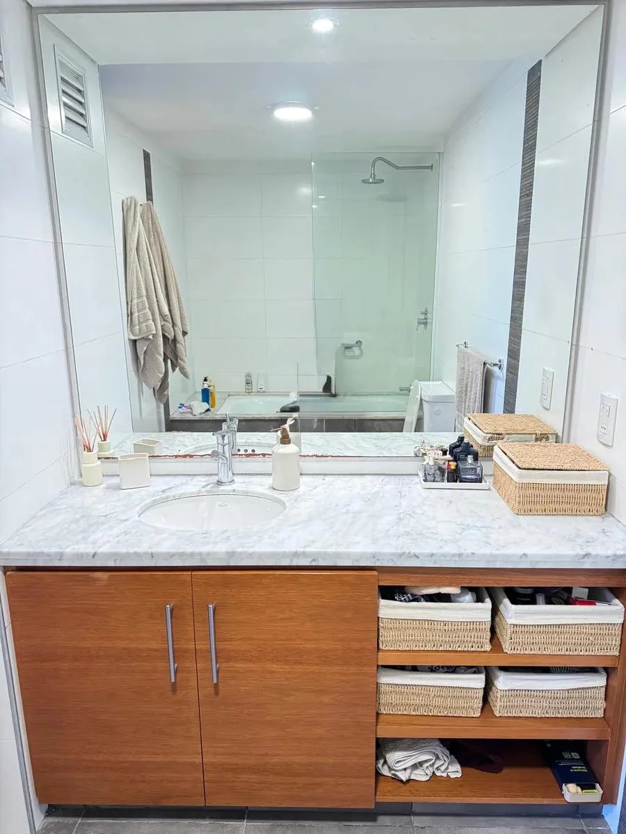 Dispone de un dormitorio en suite con vestidor, un segundo dormitorio también con vestidor, y un total de tres baños, incluyendo uno social de uso común. La calefacción y el agua caliente funcionan mediante caldera a gas, garantizando confort todo el año. Incluye además un garaje exclusivo.