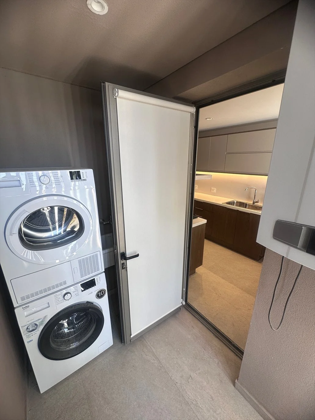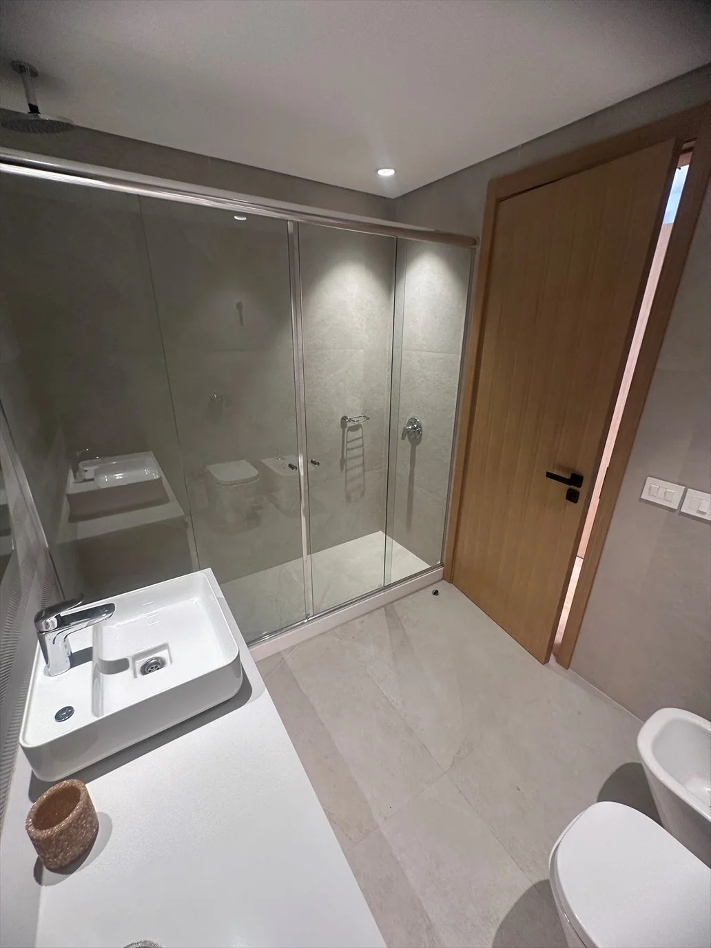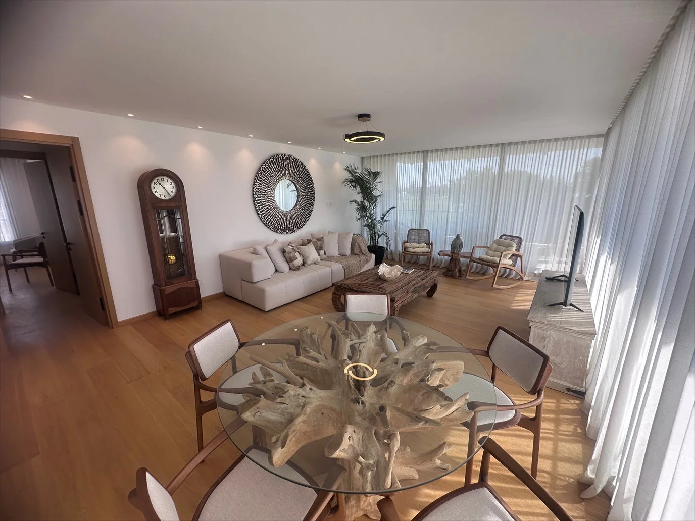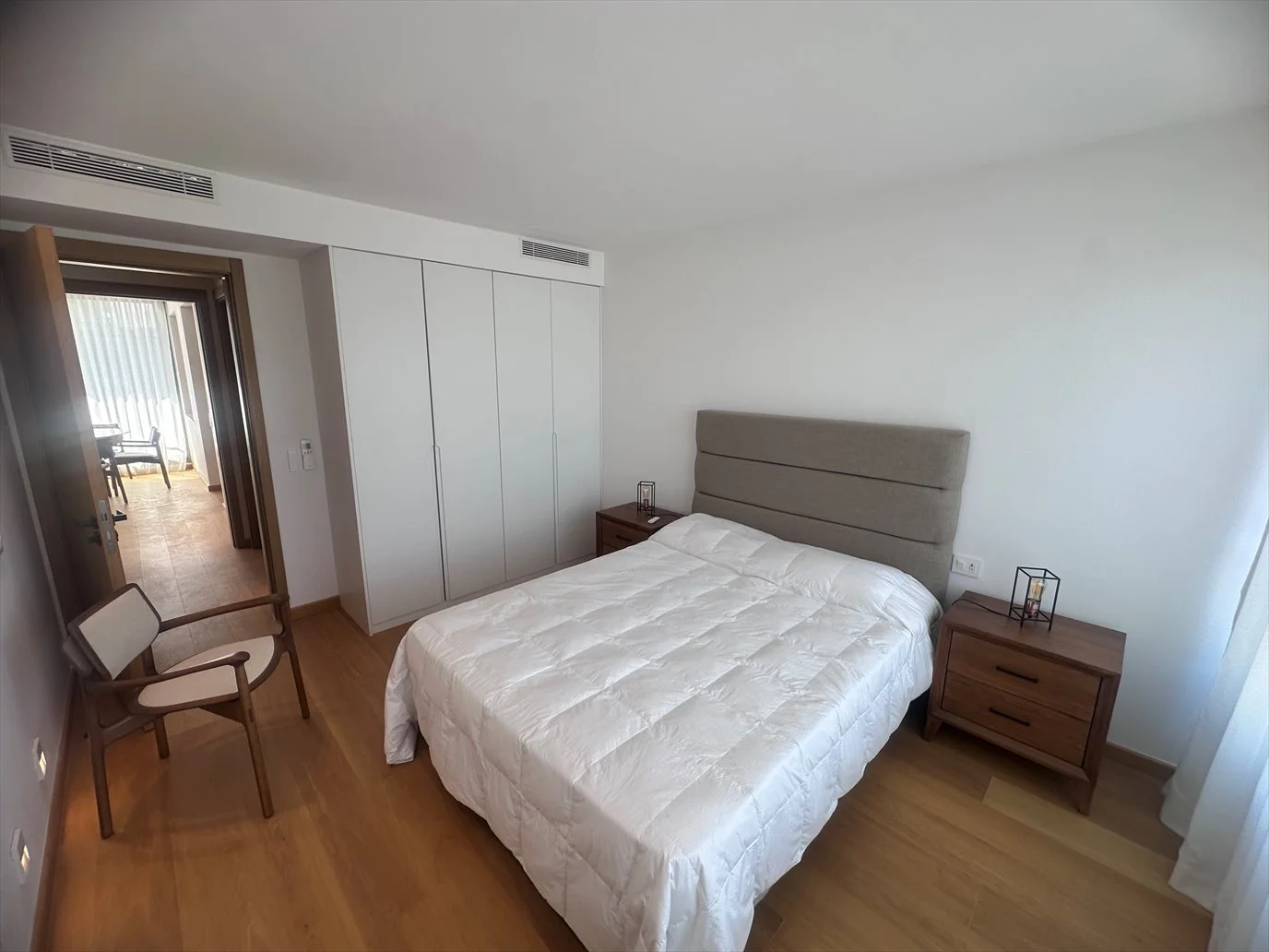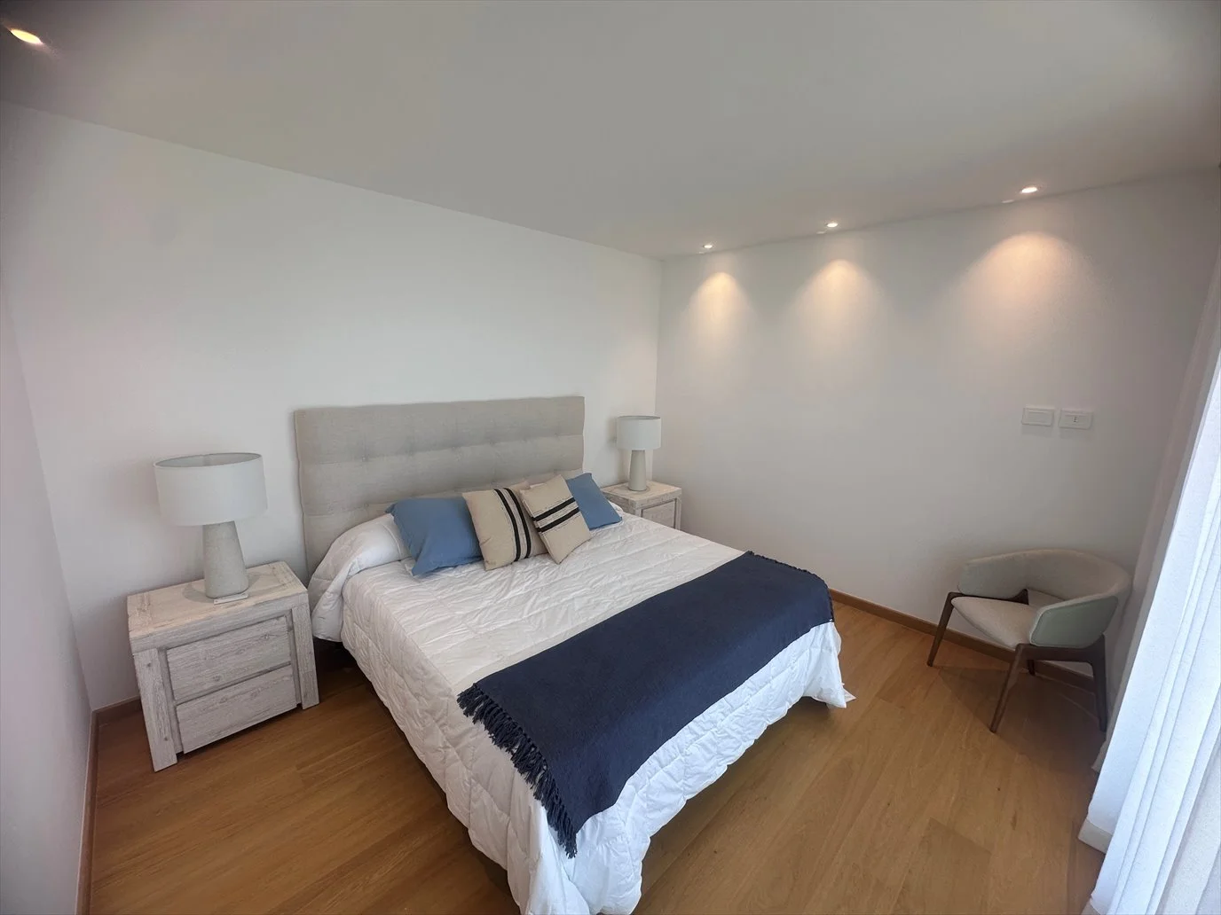 El apartamento cuenta con 2 dormitorios amplios, uno de ellos en suite, dos baños, cocina definida, lavadero con lavarropas y secarropas, caldereta a gas, aire acondicionado en toda la planta, cortinas eléctricas y una hermosa terraza con parrillero propio.