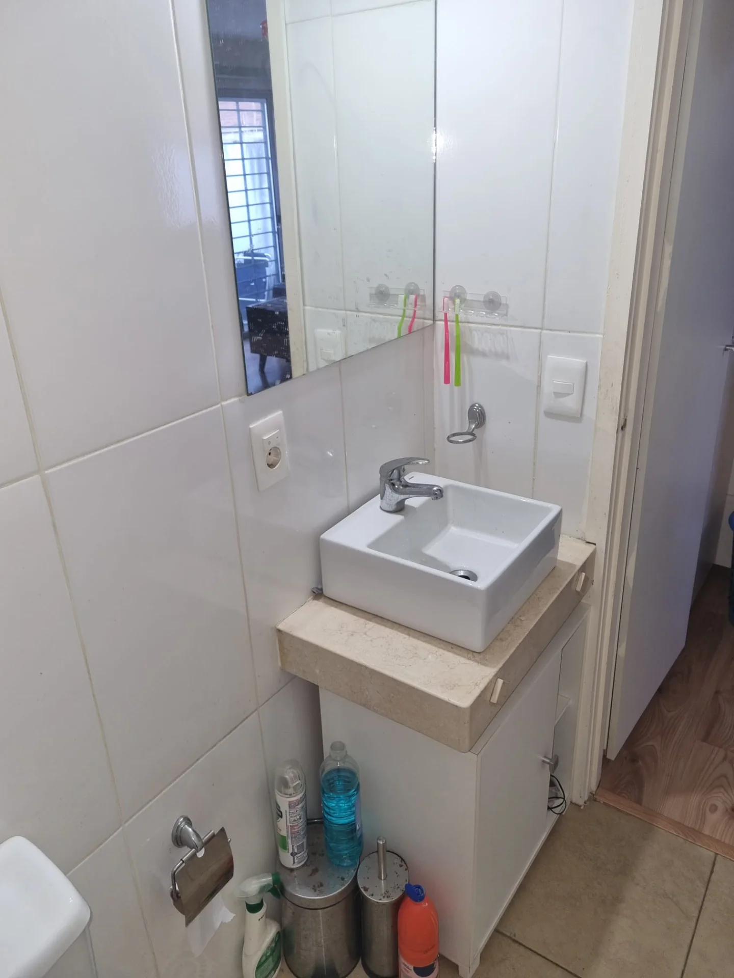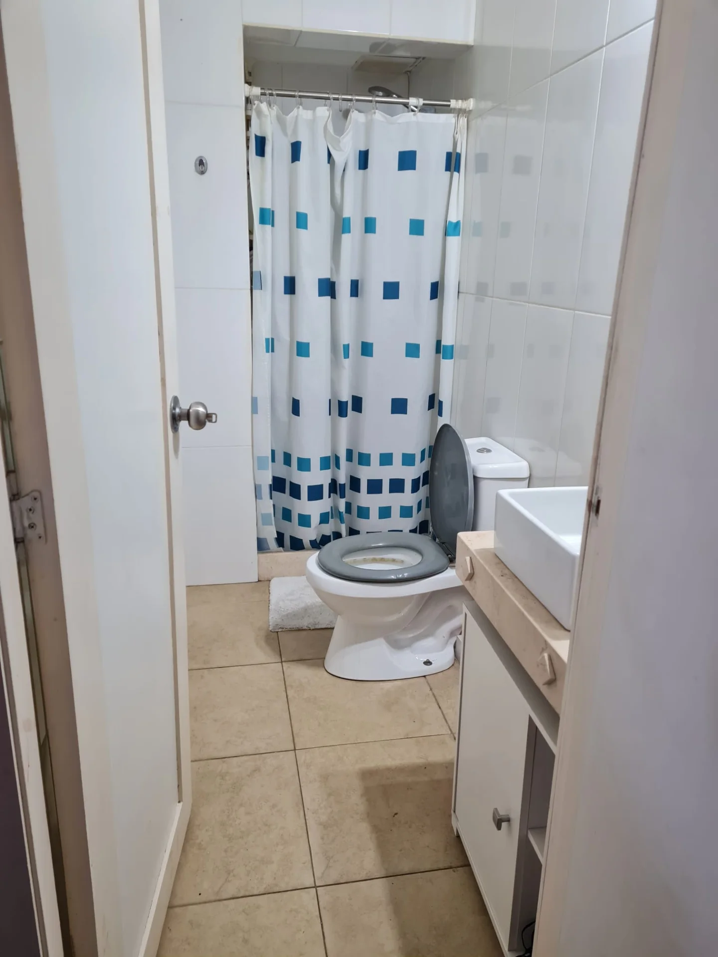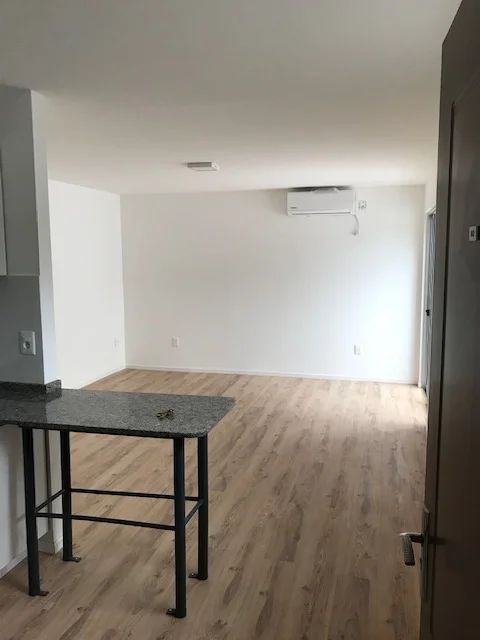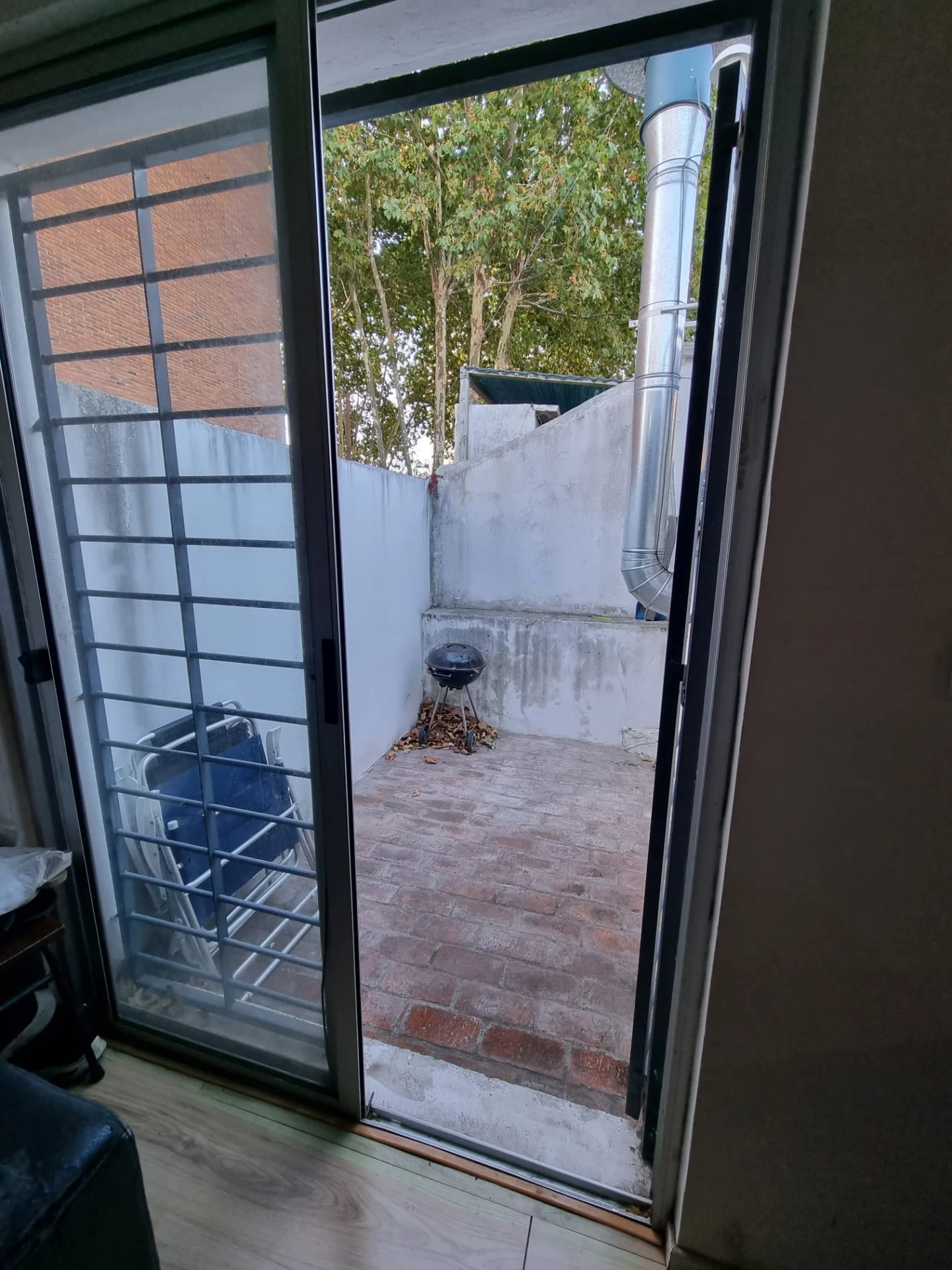 Luminoso monoambiente con aire acondicionado y placard de 2 puertas, cocina semi-definida con muebles sobre y bajo mesada y barra, baño completo, patio de uso exclusivo de 6m2.