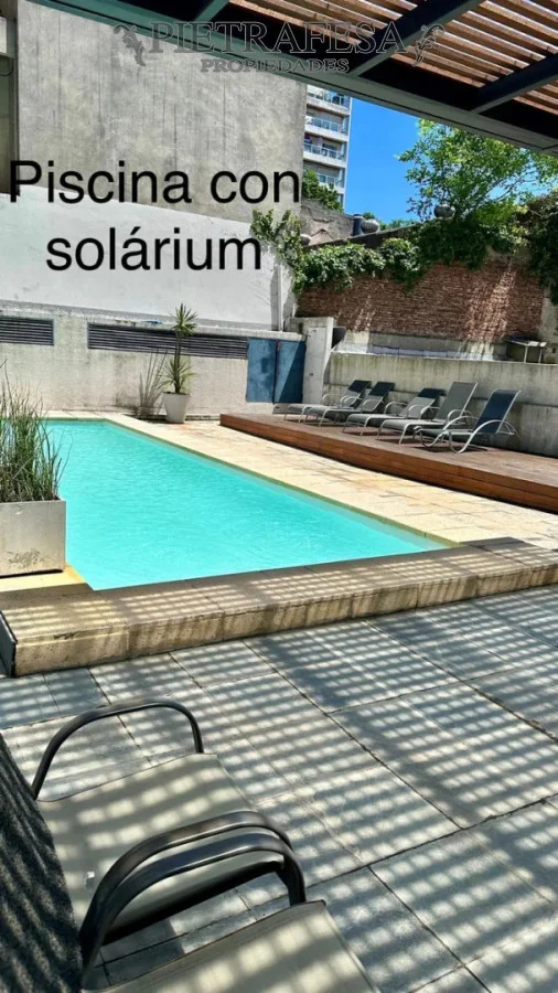 El edificio cuenta con barbacoa, piscina con solárium y lavandería.