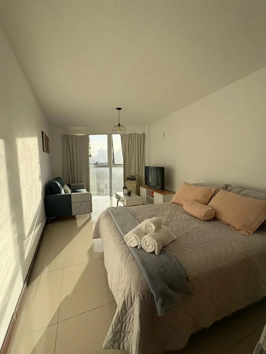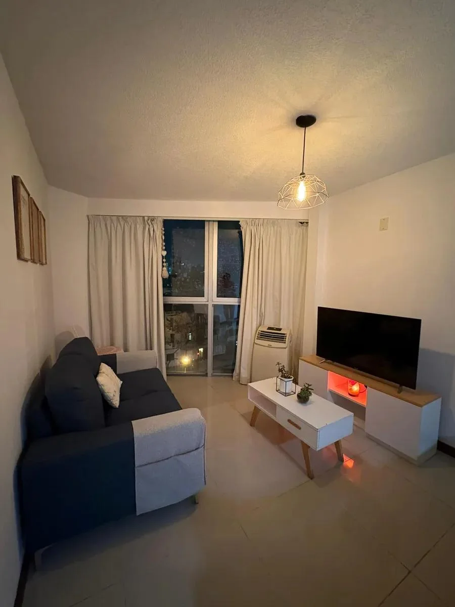 El apartamento se alquila totalmente amueblado y equipado, listo para entrar a vivir sin necesidad de traer nada más que tu ropa. Cuenta con cerradura inteligente que te permite salir y moverte sin llevar llaves, TV, aire acondicionado, cortinas blackout y rollers, cama con colchón de alta densidad, sillón y mesa ratona. La cocina está completa, con heladera, extractor, cocina con utensilios, freidora y todos los detalles necesarios para tu día a día. Dispone de calefón, roperos amplios y todo lo necesario para brindar confort.