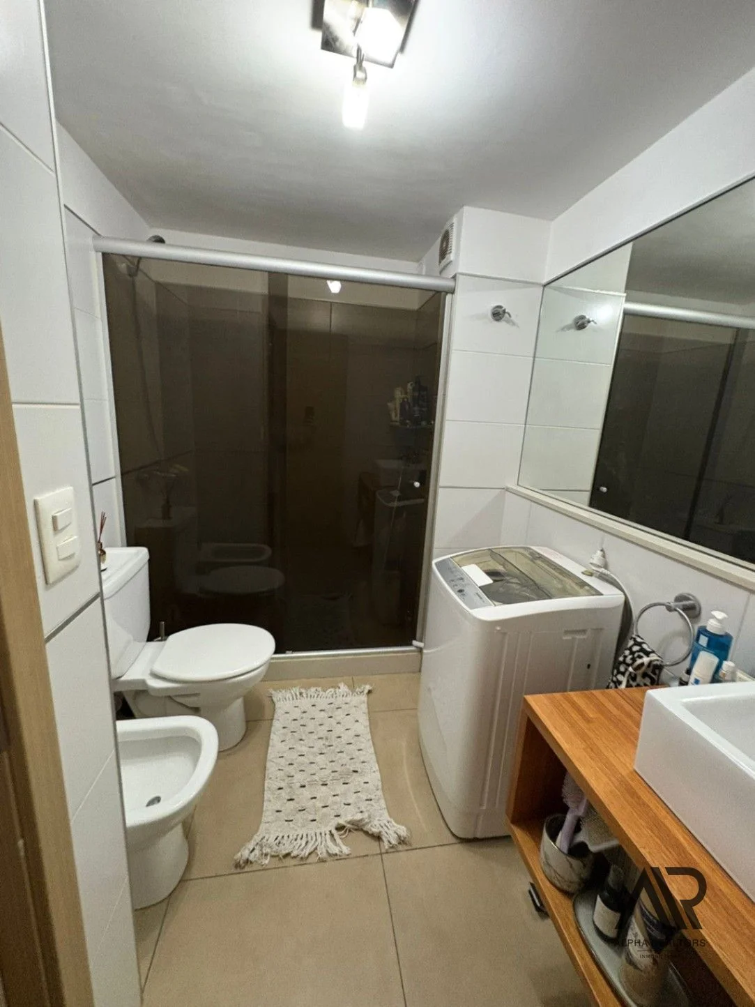 - Baño completo, de muy buen tamaño, con mampara, extractor  e instalación para el lavarropas.