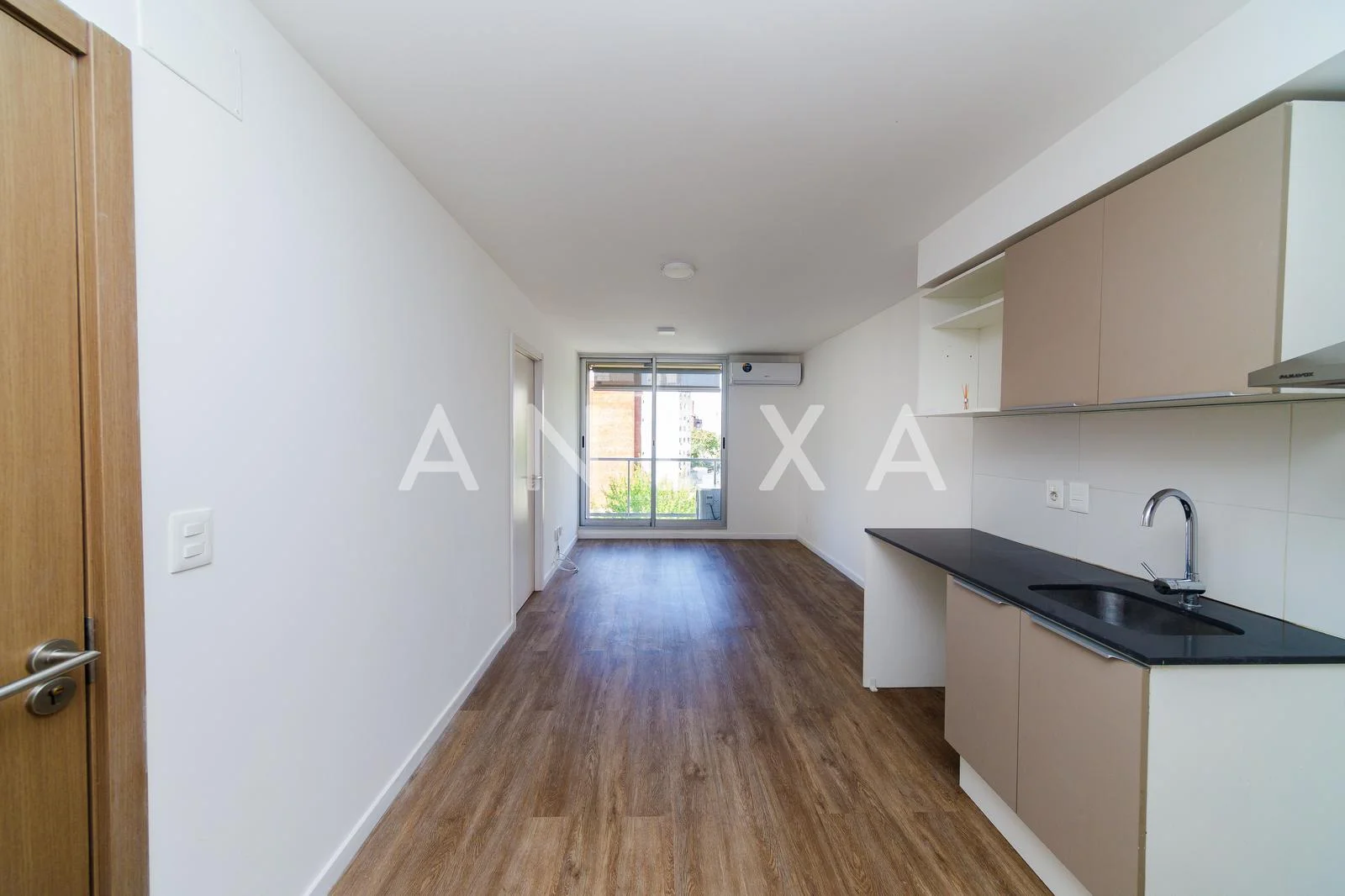 El living comedor con cocina integrada genera un espacio moderno y fluido, ideal para disfrutar y recibir. Los dos dormitorios son luminosos y bien proporcionados, mientras que el baño completo se entrega con calefón.