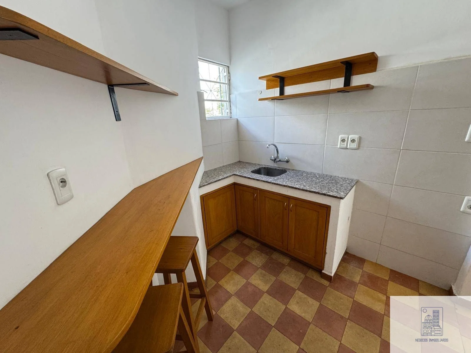 Contrafrente muy luminoso y con vista parcial a la calle, amplio living comedor, 1 dormitorio cómodo con pisos parquet y vista a la calle, pasillo de distribución, conexión para lavarropas, cocina definida con mesada de granito, placares, desayunador con banquetas de madera, 1 baño reciclado con pileta y bacha, reciclado y ventilación natural, todos los ambientes con ventanas, sanitaria y eléctrica nueva, acceso a la azotea para tender ropa, ubicación con todos los servicios a mano.
