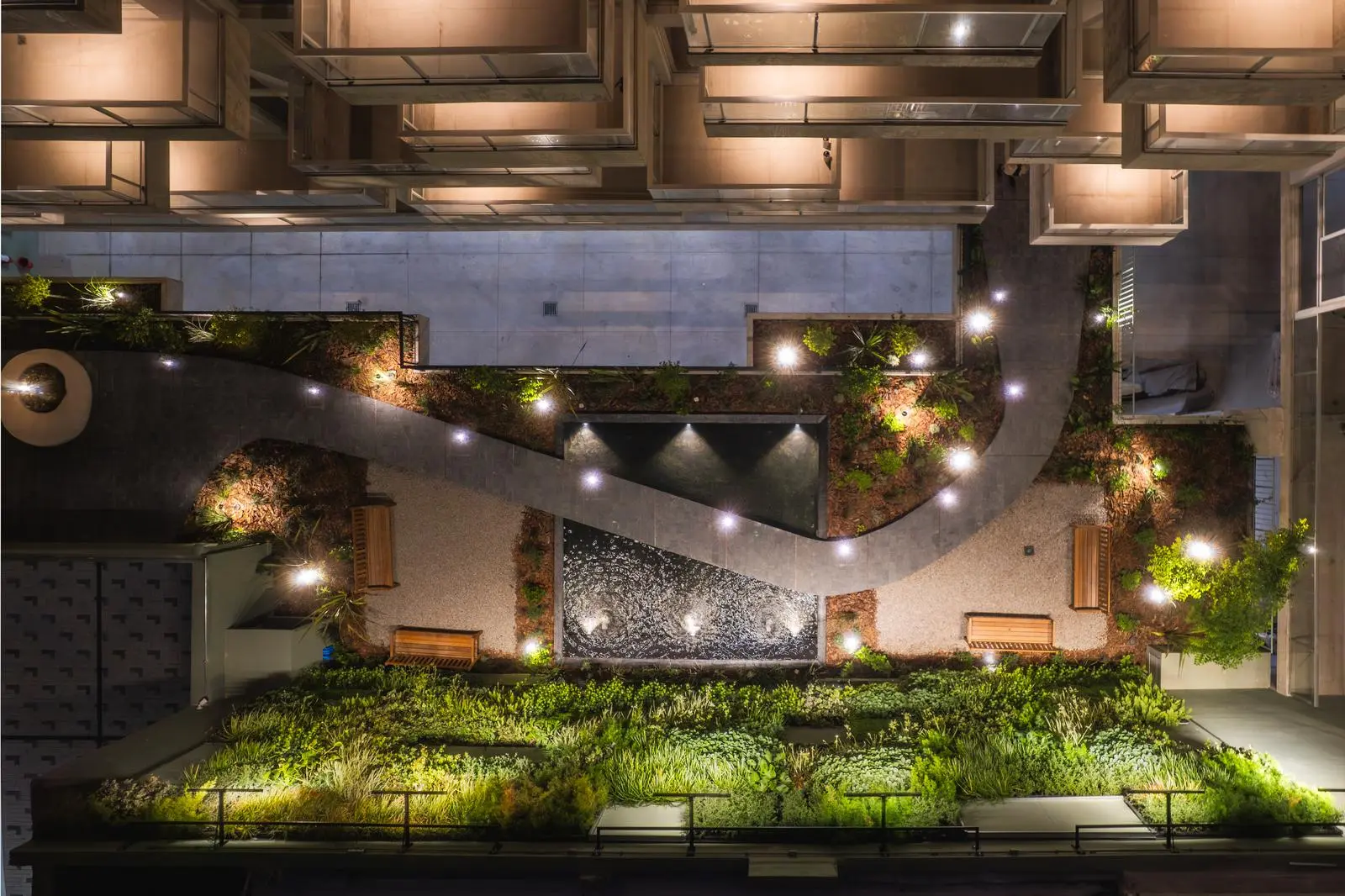 Además, el edificio Masmio Plaza ofrece una plaza central que es un verdadero espacio verde con un hermoso solárium rodeado de vegetación natural