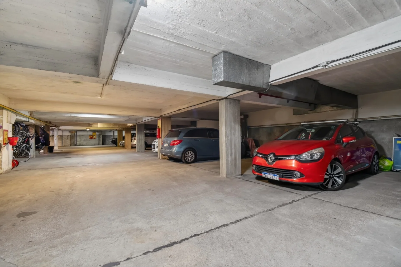La propiedad incluye 2 cocheras techadas (una en el edificio y otra en edificio continuo) — gran diferencial en la zona.
