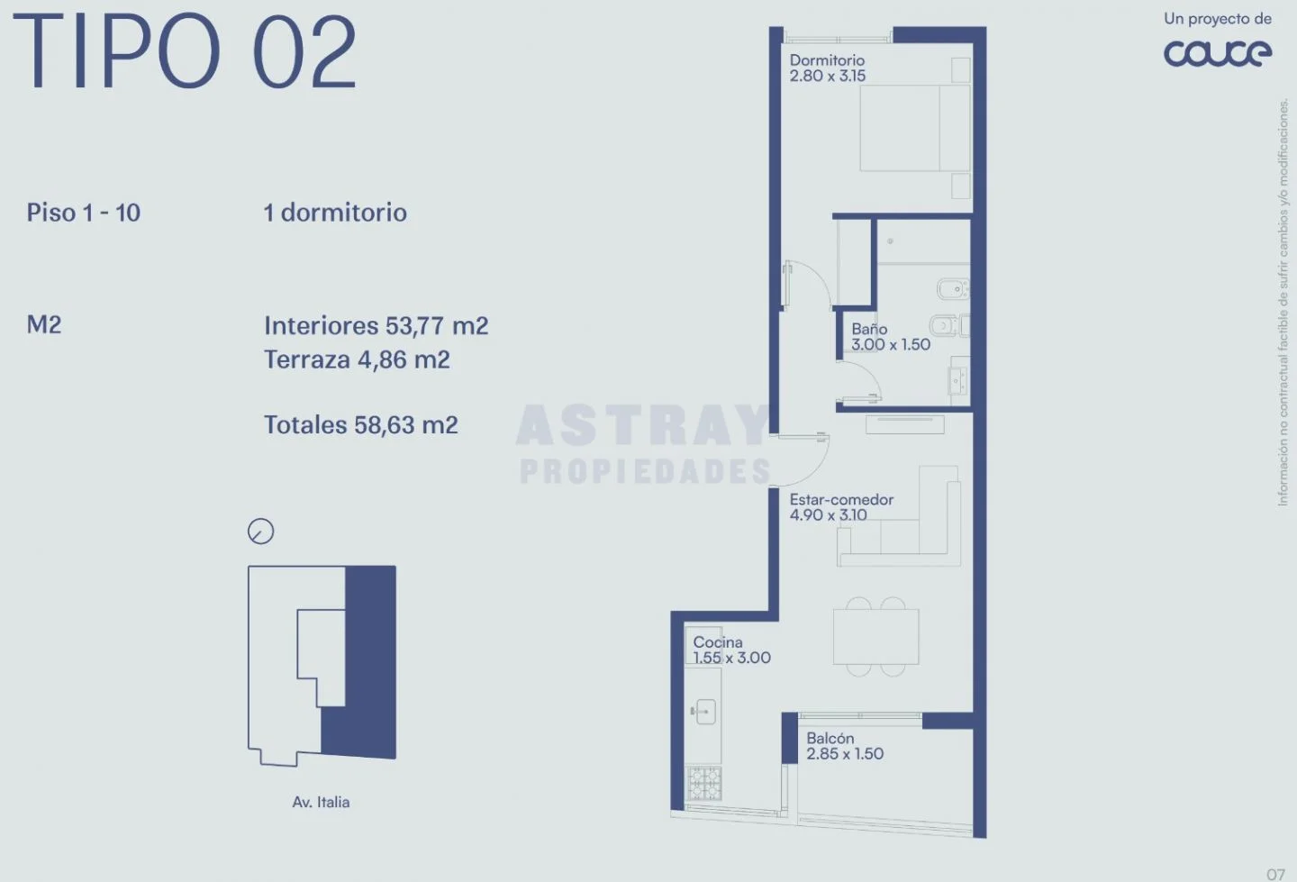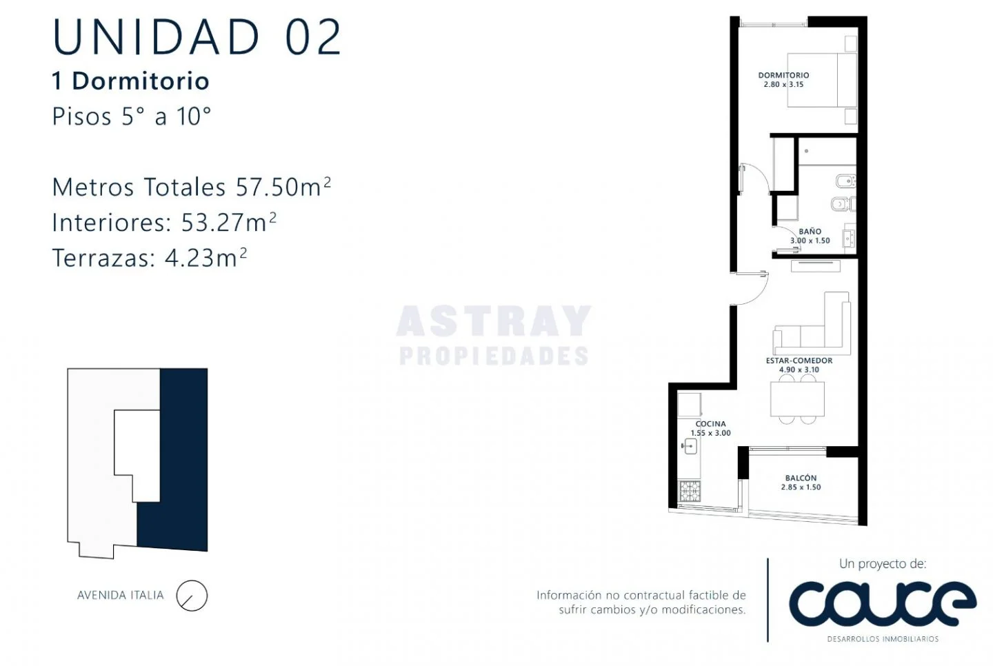 Todas las unidades contarán con terrazas al frente, conexión para lavarropas, preinstalación para equipos AA y placares completos en los dormitorios.