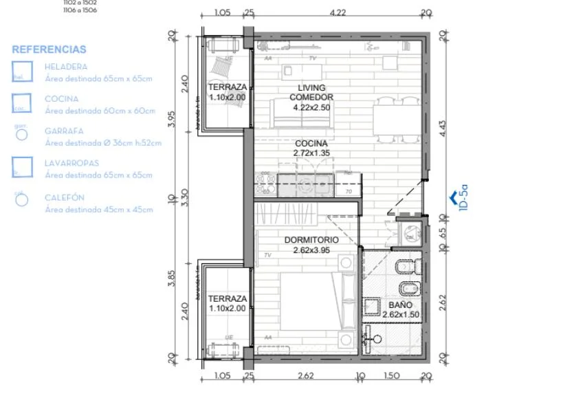 Living comedor con salida a balcón.