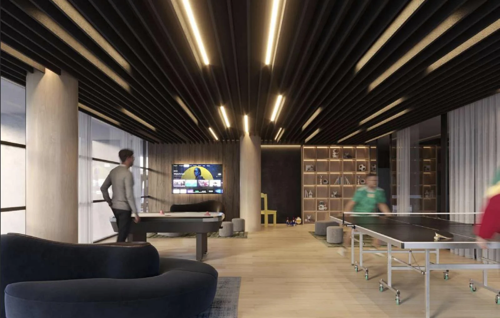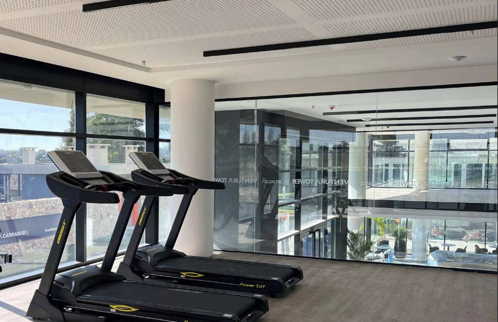 Comunicación interna del edificio a través de pantallas en espacios comunes.