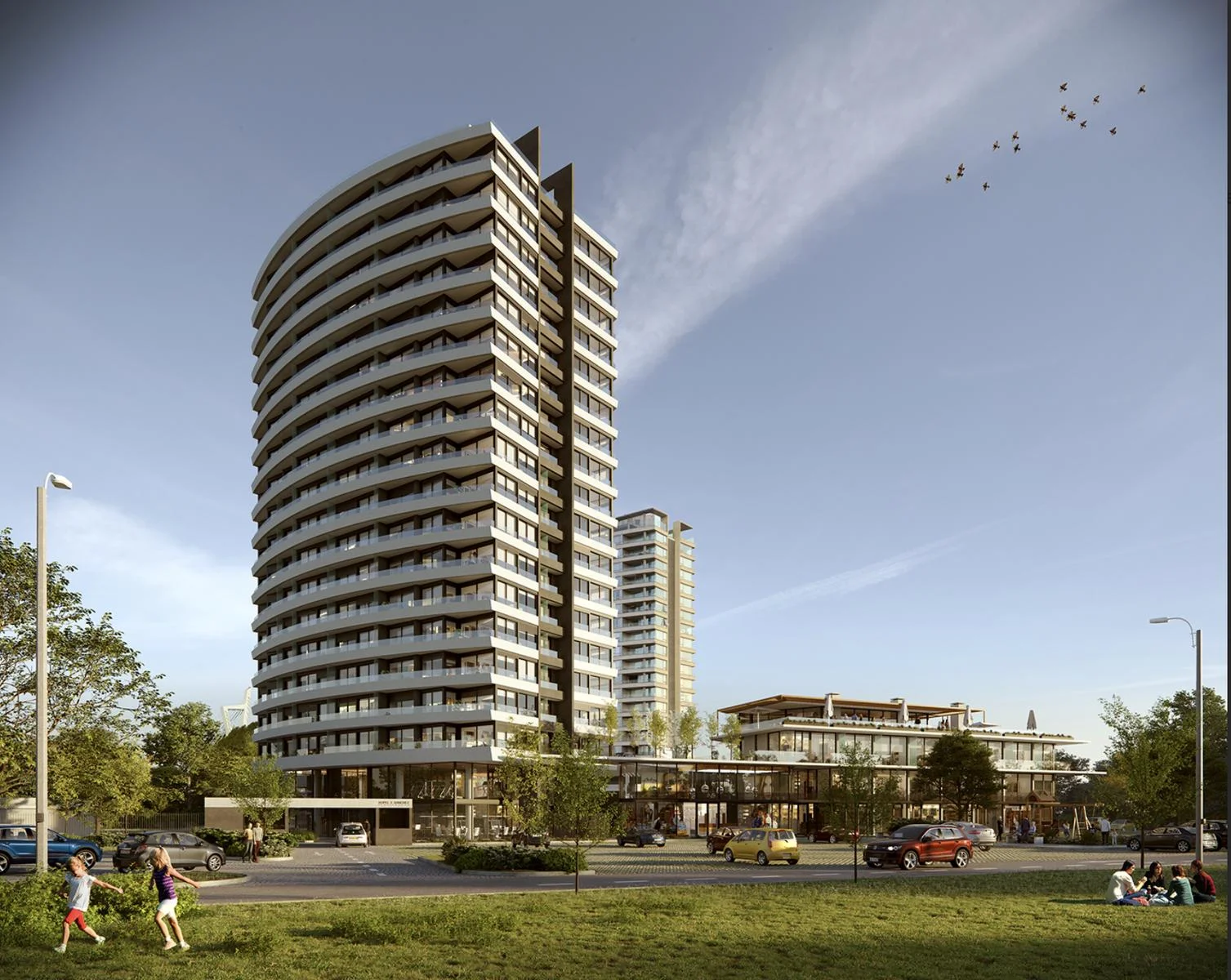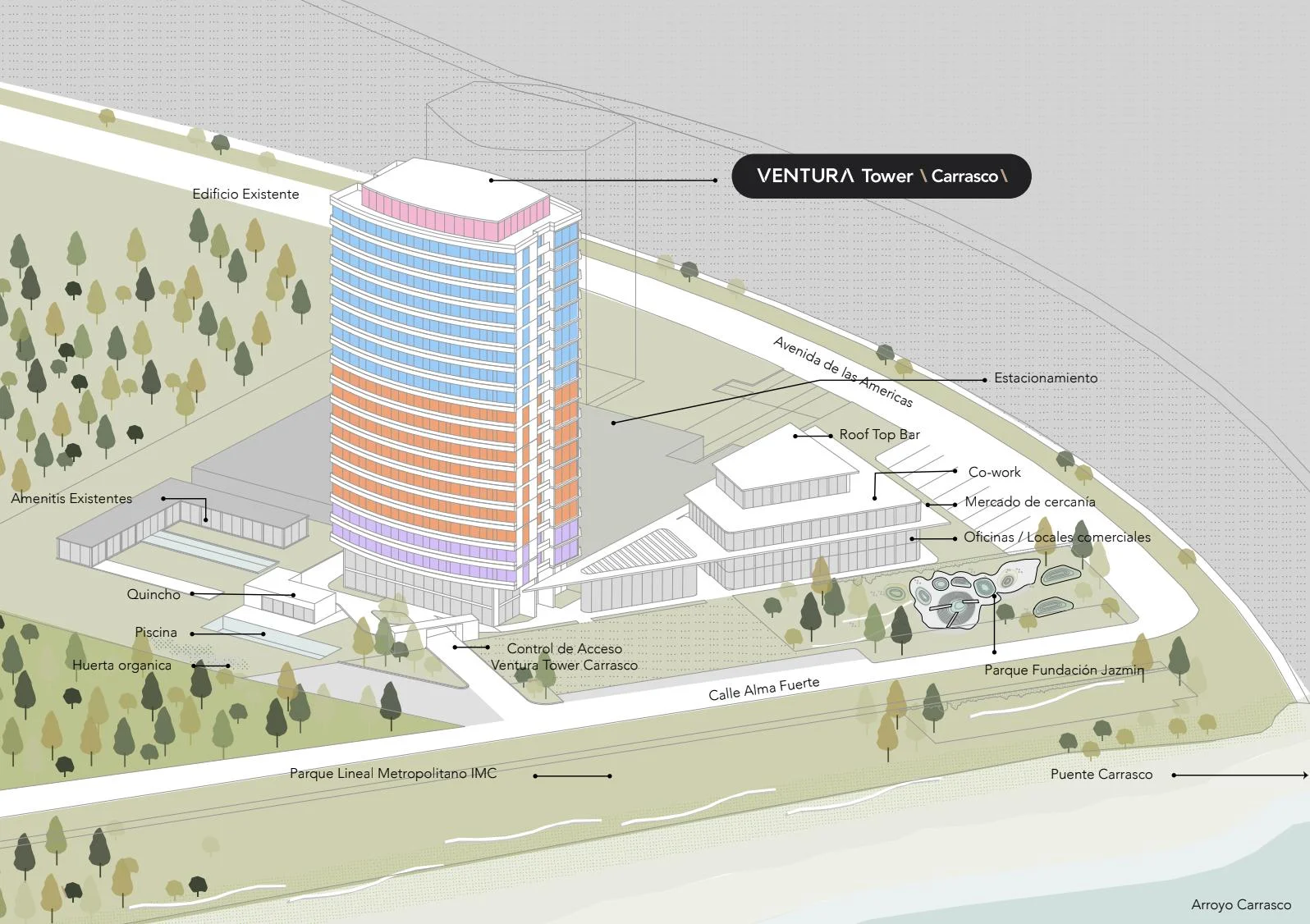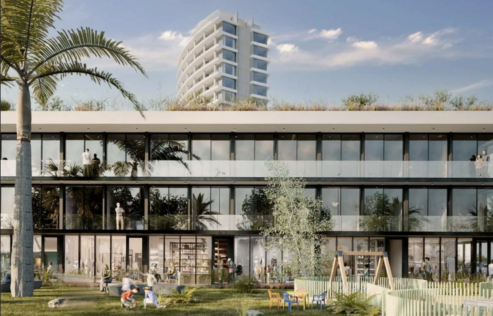 Se prevé la construcción de un centro comercial como etapa 2 del proyecto, sujeto a la dirección del proyecto.