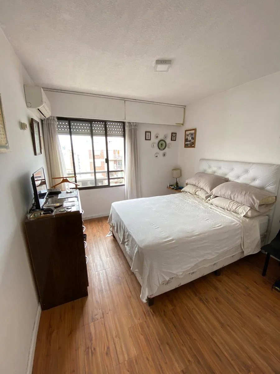 Apartamento en venta sobre Av. Sarmiento 38 mt2 con balcon, con un dormitorio amplio que incluye placard y una excelente orientación norte que garantiza luz natural durante todo el año. La unidad cuenta con un living comedor cómodo con cocina integrada, baño completo, aire acondicionado y calefacción por losa radiante. Desde el balcón se disfruta una vista despejada gracias al piso elevado en el que se encuentra. Se entrega totalmente equipado: cortinas, calefón, lavadora, cocina, heladera, juego de comedor, camas marineras, sofá y somier, lo que lo convierte en una opción pronta para ocupar o ideal para renta inmediata.