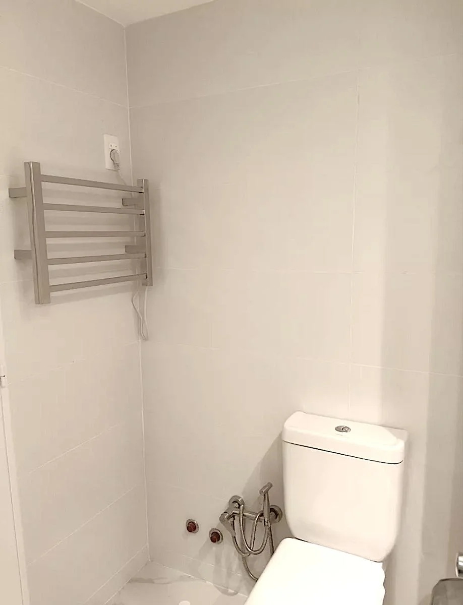 Baño con mampara, placar, calienta toallas, extractor y conexión para lavarropas y calefón.