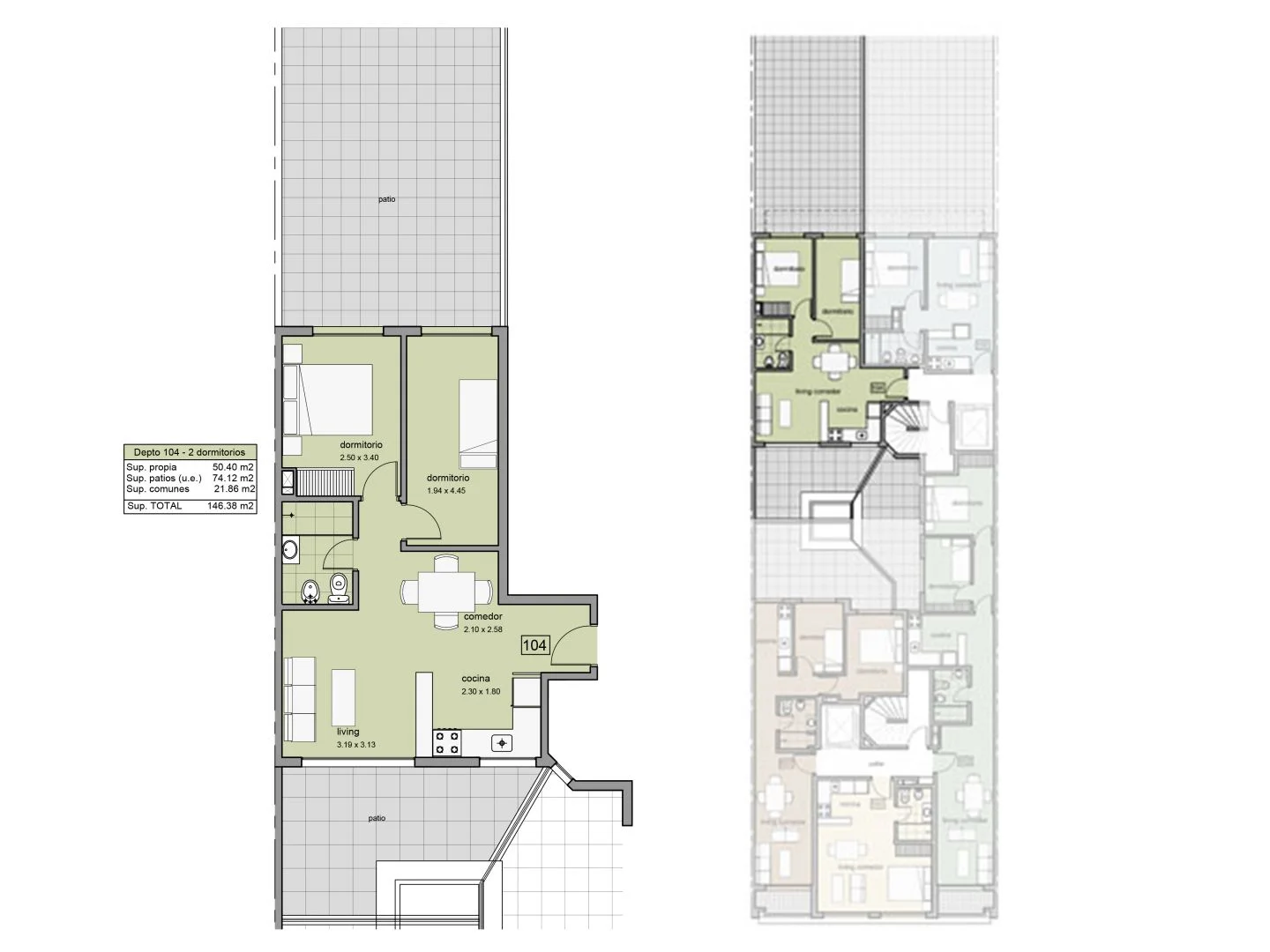 Con dos dormitorios con acceso a un segundo patio de uso exclusivo.
