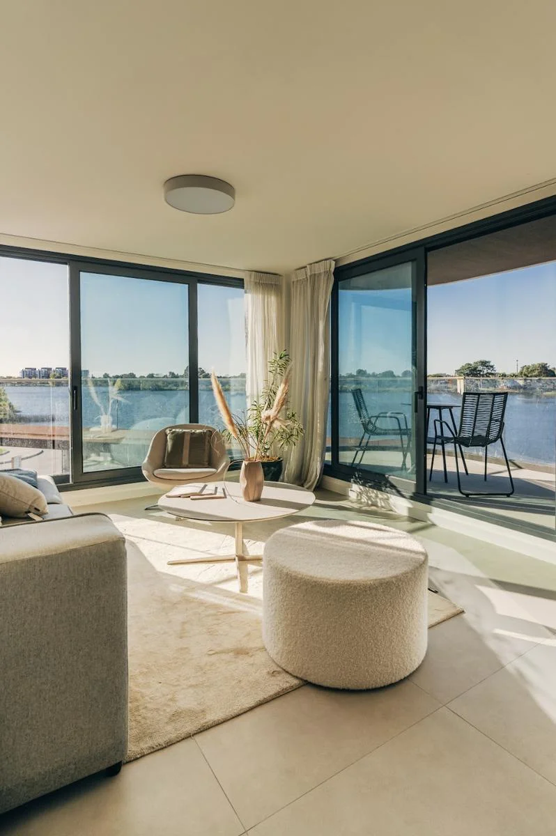 Construido a orillas de un lago de 8 hectáreas, ideal para los deportes acuáticos, paseos en kayak o simplemente para disfrutar el marco natural, ya sea en un paseo por sus orillas o desde los apartamentos con vistas 360.