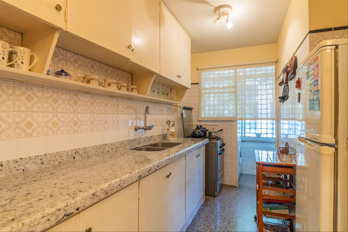 Piso 2. Cuenta con living comedor luminoso, con salida a terraza con rejas y pisos de parquet bien conservados. Cocina con placares sobre y bajo mesada, mesada de granito y office. Terraza lavadero.