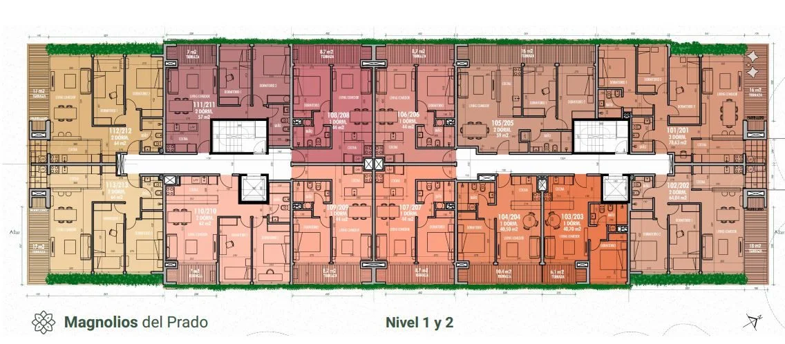 Magnolios es un exclusivo proyecto en un terreno de 3000 m² con 850 m² de arboleda protegida. Ofrece 49 unidades de 1, 2 y 3 dormitorios, todas con terraza y parrillero, distribuidas en 4 niveles. Diseñadas para disfrutar al máximo, cada una con parrillero propio. Entrega octubre 2027.
