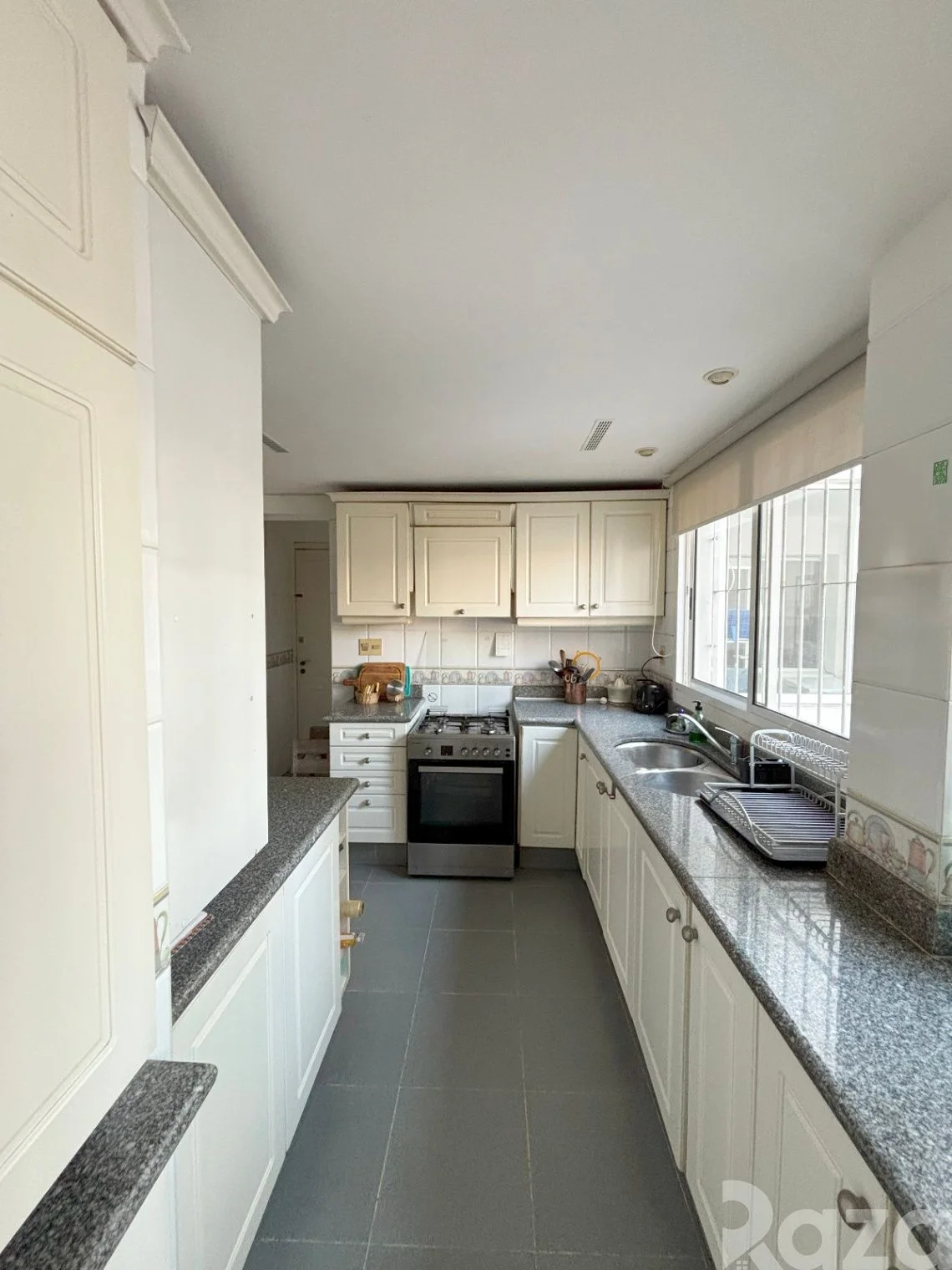 Su cocina definida y luminosa, cuenta con desayunador cómodo, excelente capacidad de almacenamiento y entrada independiente. Una opción perfecta para no invadir con el ingreso si su ambiente principal necesita de la privacidad, por reuniones familiares o cenas con amigos. Se trata de una cocina justa para la amplitud y prestaciones del inmueble. Junto a la misma, ofrece un cómodo dormitorio de servicio con baño completo, que permite la flexibilidad de transformarse en un espacio de trabajo o estudio.