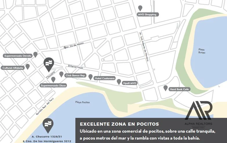 A una cuadra del mar, en una zona de alta comercialización y demanda. Además negocios comerciales, clubes deportivos, próximo al WTC y Montevideo Shopping.