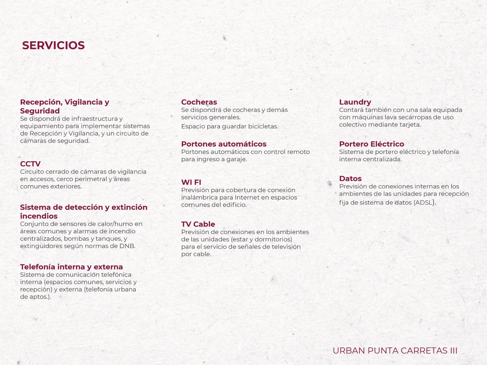 El proyecto ofrece un conjunto de servicios que garantizan comodidad y tranquilidad:
