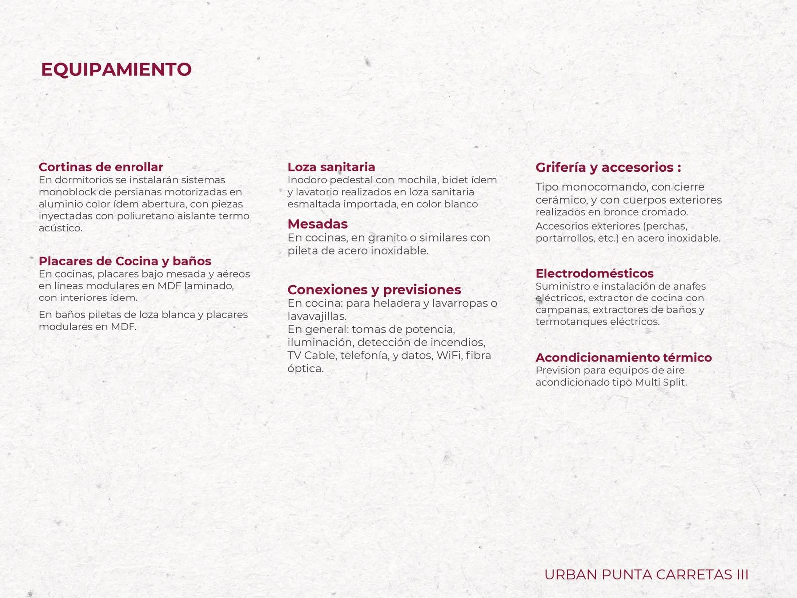 *Conectividad: WI FI en espacios comunes y previsión de conexiones de TV Cable y Datos (ADSL) en ambientes de las unidades.