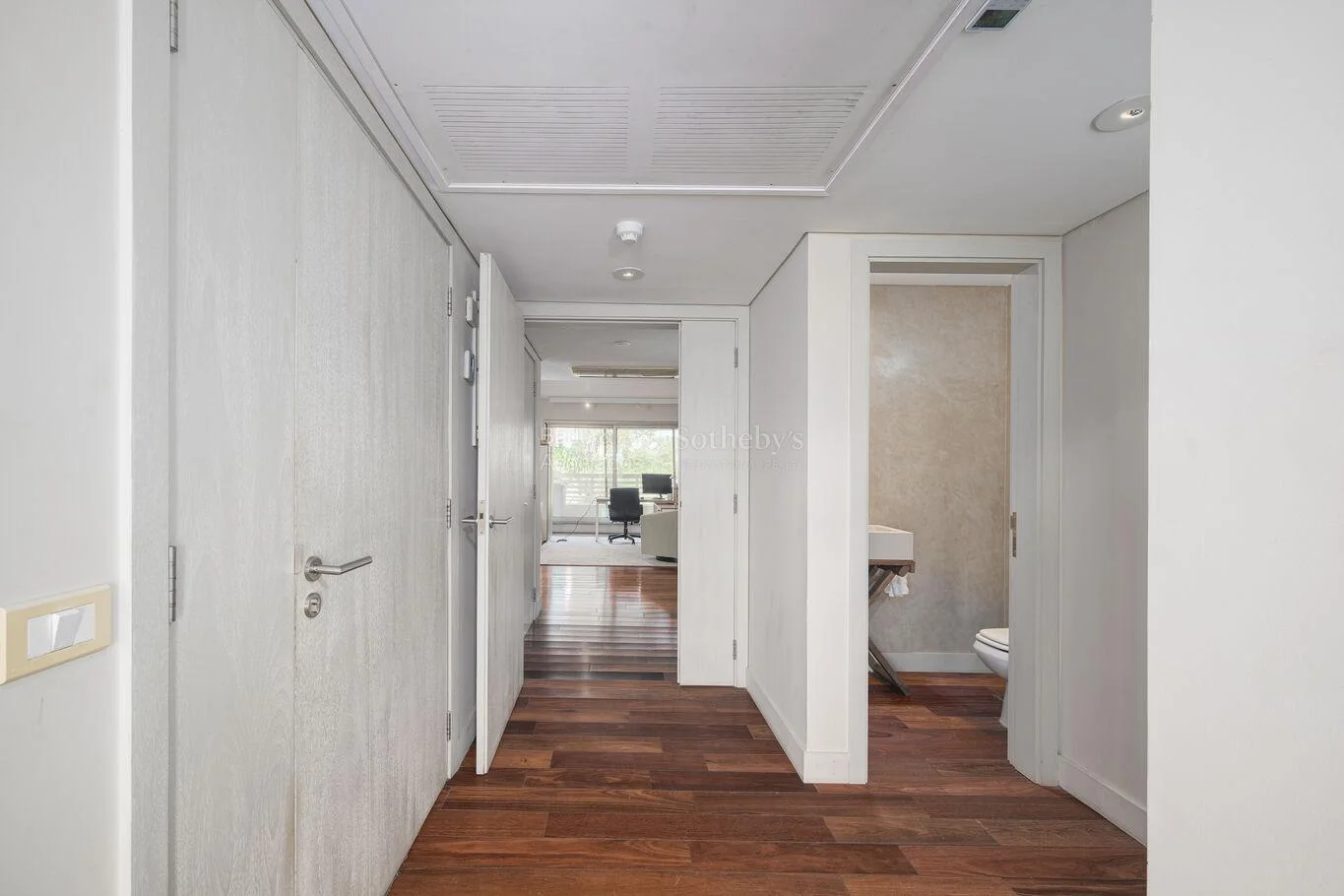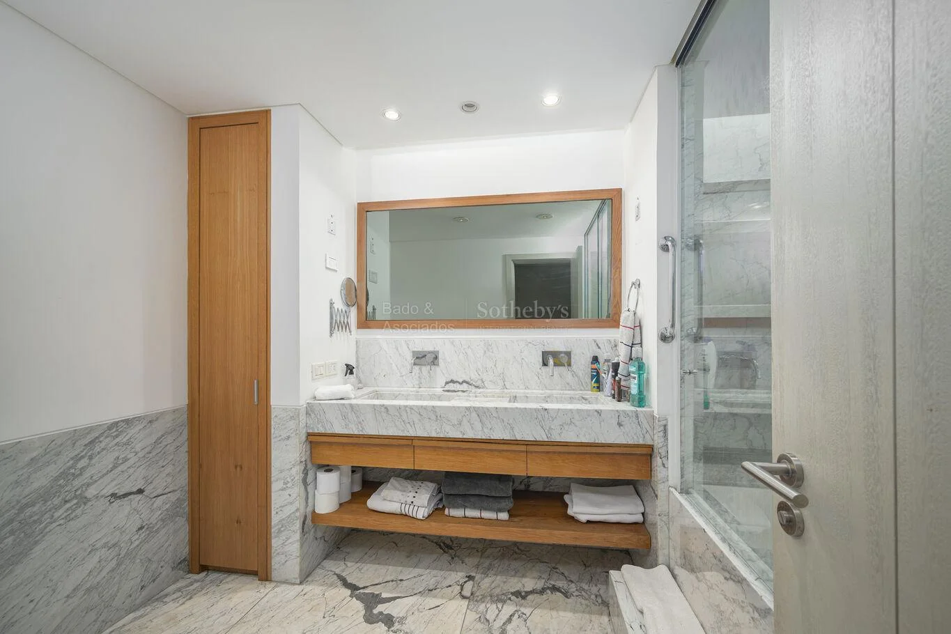 Area intima con espacio de guardado y acceso a dos suites. Master bedroom con vestidor, baño completo y jacuzzi. Detalles en marmol.