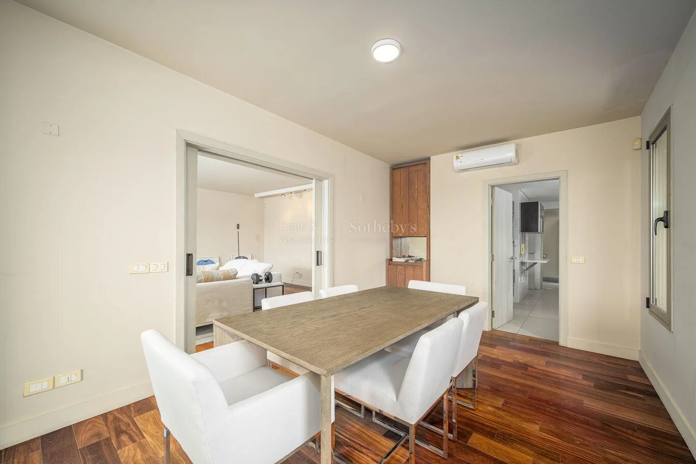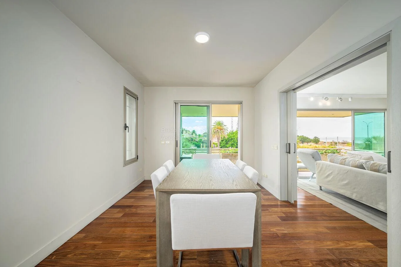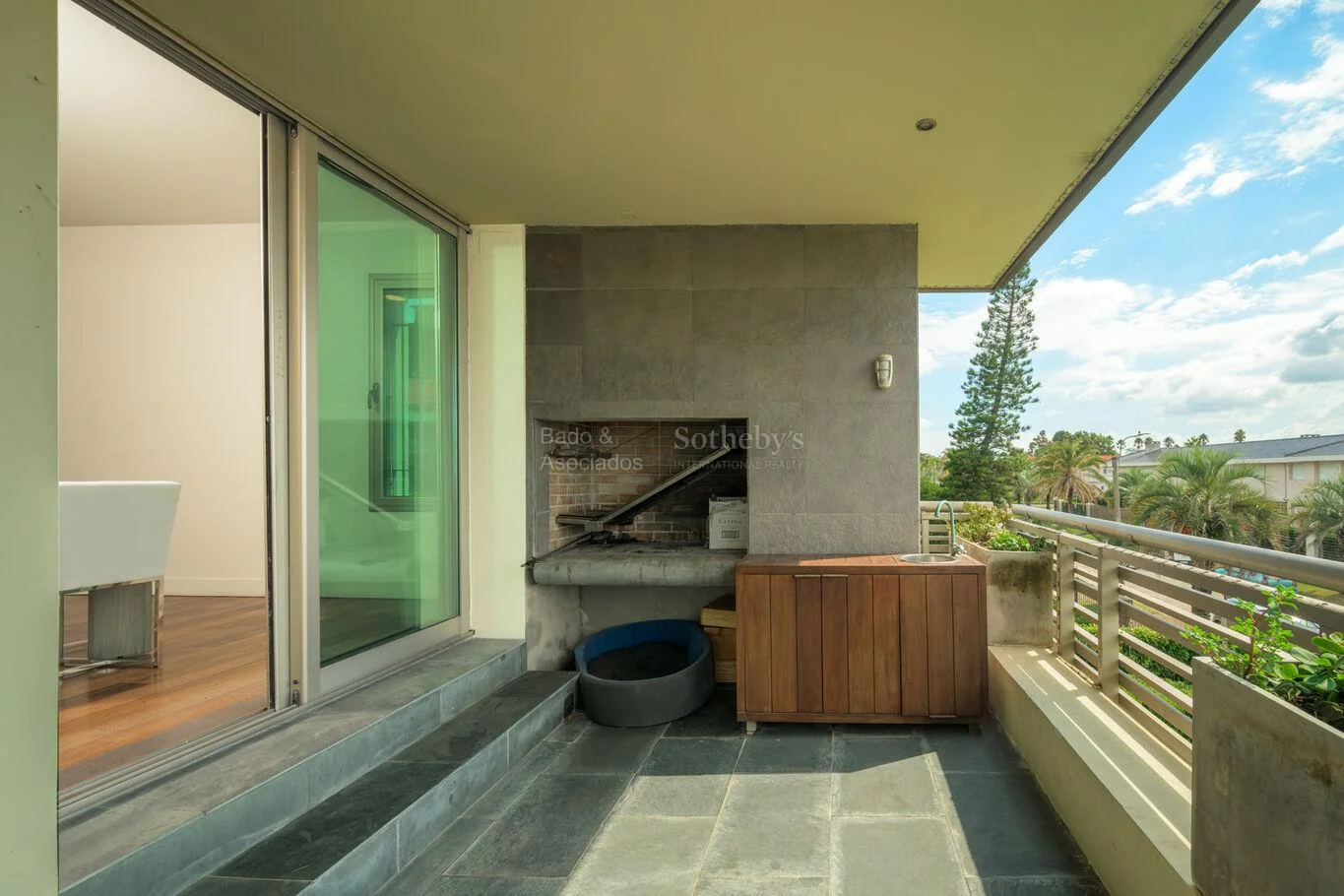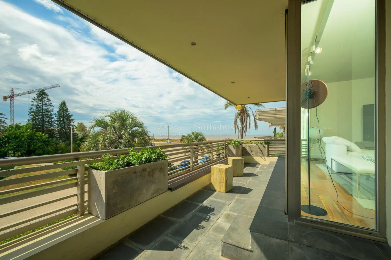 Ingreso definido con moderno toilette. Detalles de carpinteria . Amplio Living y comedor con vista a la Rambla de Carrasco.Ambos ambientes tienen acceso a una terraza lineal con parrillero.
