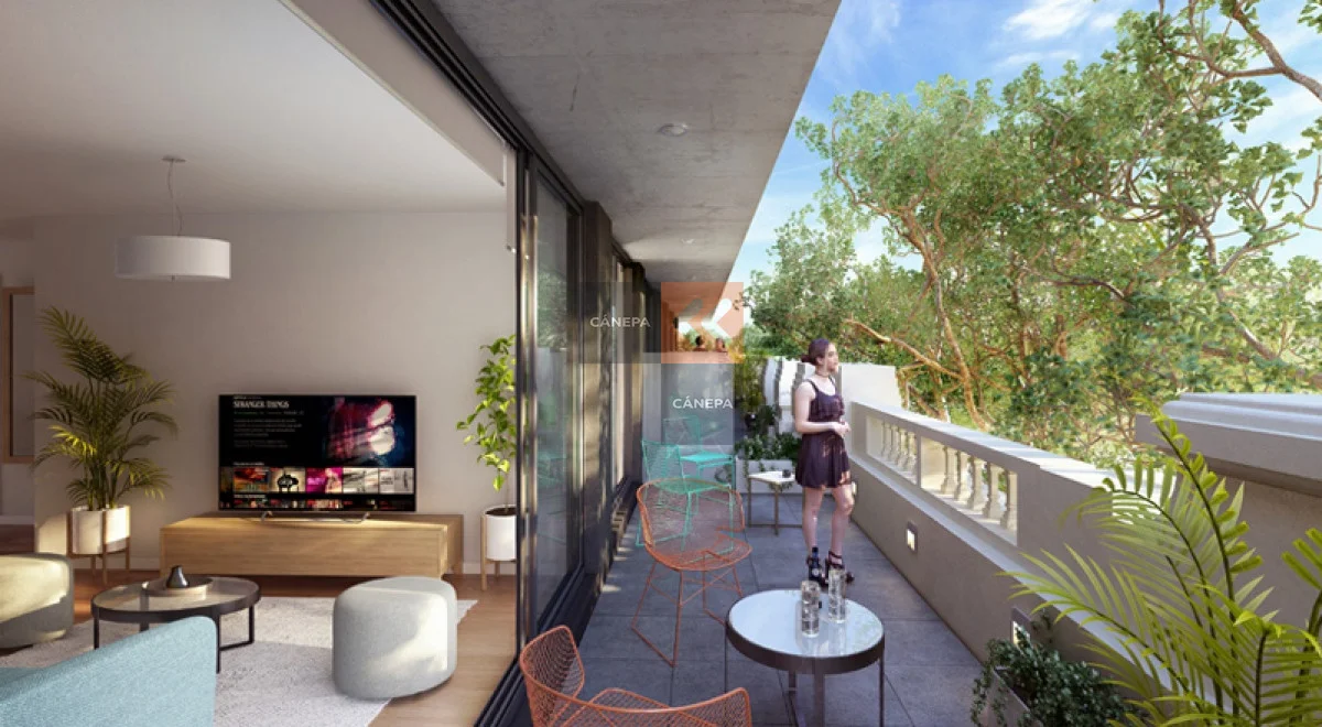 Living comedor Cocina integrada con barra Terraza al frente 2 dormitorio 1 baño completo Amenitíes del edificio Disponibilidad de garaje a UDS 18800 Referencia Interna : Tera-14510