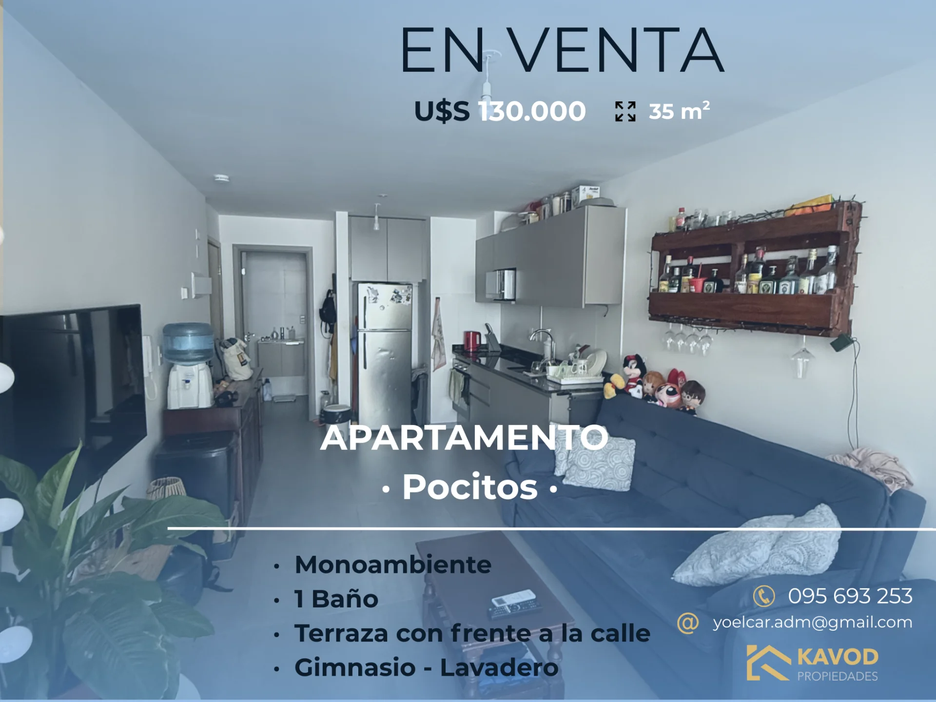 Monoambiente con renta – Pocitos ?Ubicado en en el corazón de Pocitos, a metros de todos los servicios. Pedro F. Berro, Esq. Gabriel Pereira. A tan solo 300 metros de la rambla. Oportunidad ideal para inversión en una de las zonas más buscadas de Montevideo. Hermoso Monoambiente, en 8vo piso con terraza al frente, muy luminoso y con excelente calidad constructiva. La unidad se encuentra alquilada con contrato vigente hasta abril de 2026, y posibilidad de extender, con garantía Porto Seguro, generando renta desde el primer día. Características: -Terraza al frente -Cocina con horno y anafe -Baño completo -Piso alto muy luminoso Amenities del edificio: -Barbacoa con parrillero -Lavadero -Gimnasio Precio: USD 130.000 Gastos comunes aproximados: $2.500 Honorarios de intermediación; de venta: 3% + IVA. De alquiler: un mes + IVA. Consultas por mensaje directo. KAVOD Propiedades - Gestión Inmobiliaria & Diseño.