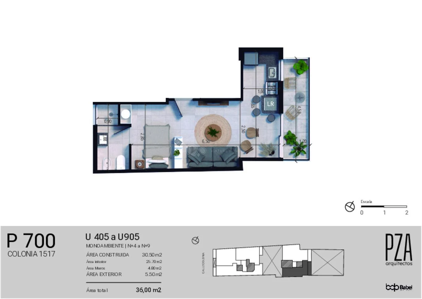 Metraje: 26 m2 propios + 6 m2 terraza.