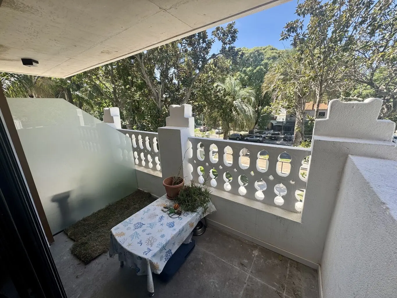 Balcon al frente de muy buen tamaño, con estupenda vista verde.