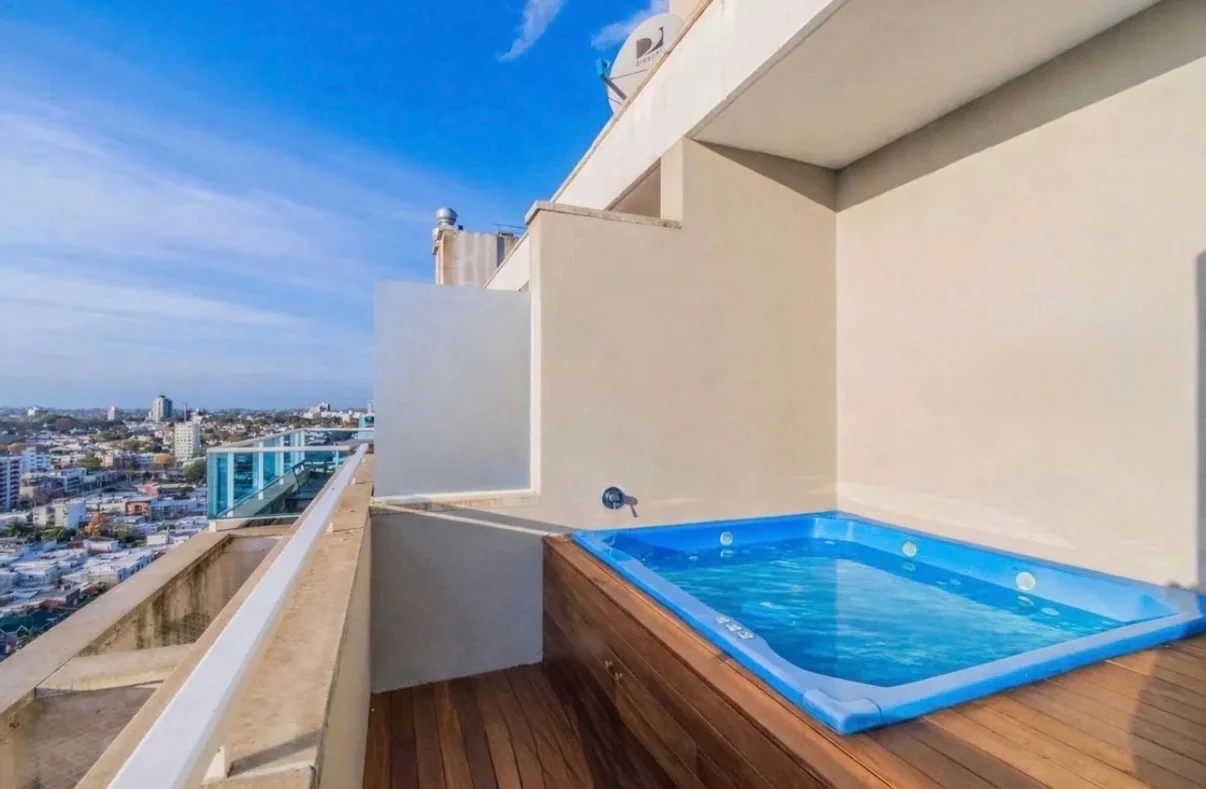 ALQUILER / BUCEO Ubicación: Av. Mariscal Francisco Solano López esq. Av. Gral. Rivera – Edificio Diamantis Plaza Alquiler: USD 2.950 + $24.000 GC Garantías: A confirmar Detalles: 143 m² Penthouse al frente Muy luminoso 3 dormitorios con placard y aire acondicionado Dormitorio principal en suite con vestidor y jacuzzi 2 baños completos con mampara Cocina definida con placares bajo y sobre mesada Terraza lavadero Amplio living comedor con salida a gran terraza con parrillero y jacuzzi Aire acondicionado Cochera de uso exclusivo + 2 boxes en subsuelo El edificio cuenta con: Solárium 7 piscinas Vestuarios Spa Hidromasajes Sauna Sala de relax Gimnasio equipado 6 barbacoas con parrillero 3 salas gourmet 3 salones de fiestas Sala de reuniones Sala de juegos ¡Agenda tu visita!
